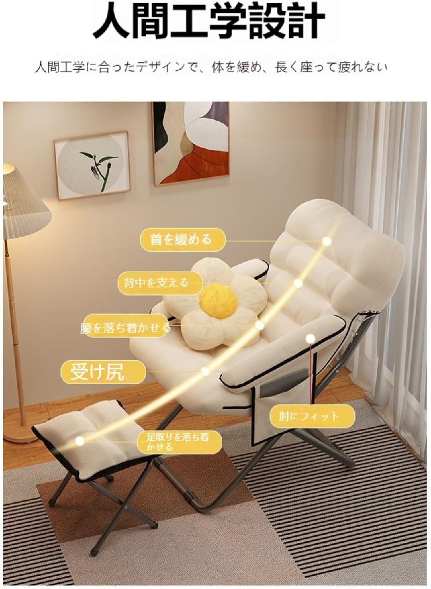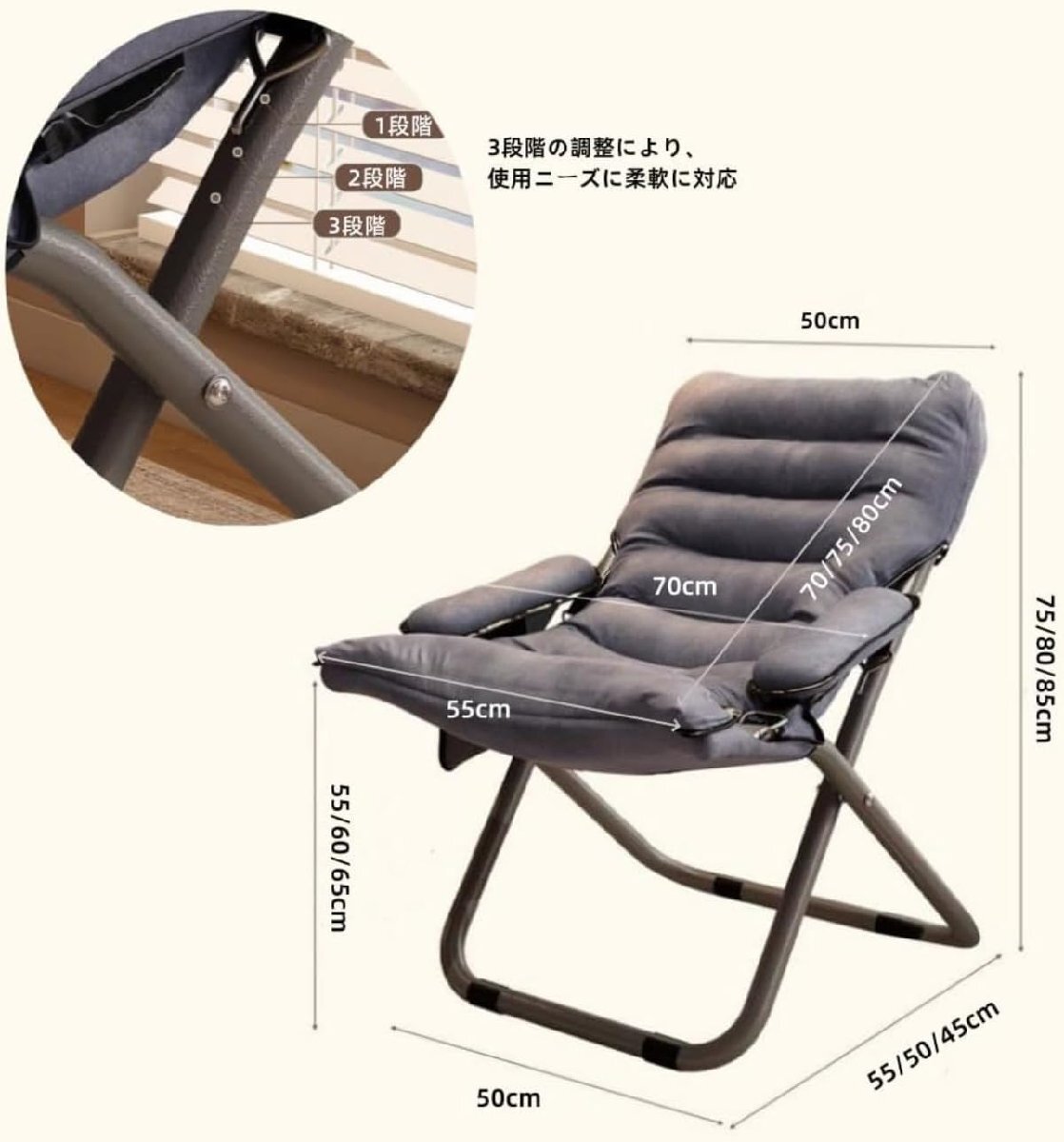【傾斜調整可能】背もたれには3段調節可能な設計があり、座っていても、あぐらをかいていても、横になっていても柔軟に対応することができます。自由に快適な姿勢に調節でき、レジャーチェアのデザインは人間工学に合っており、長く座っても疲れない。