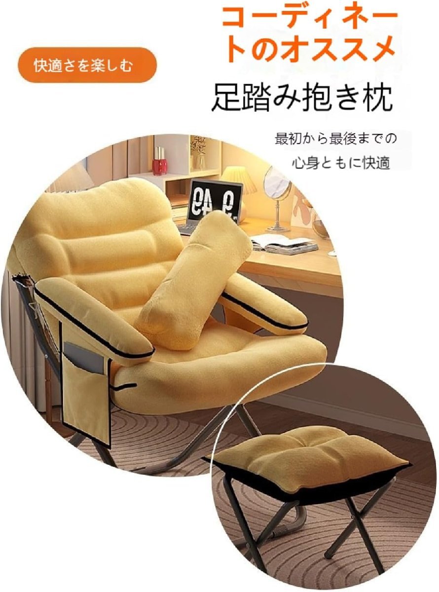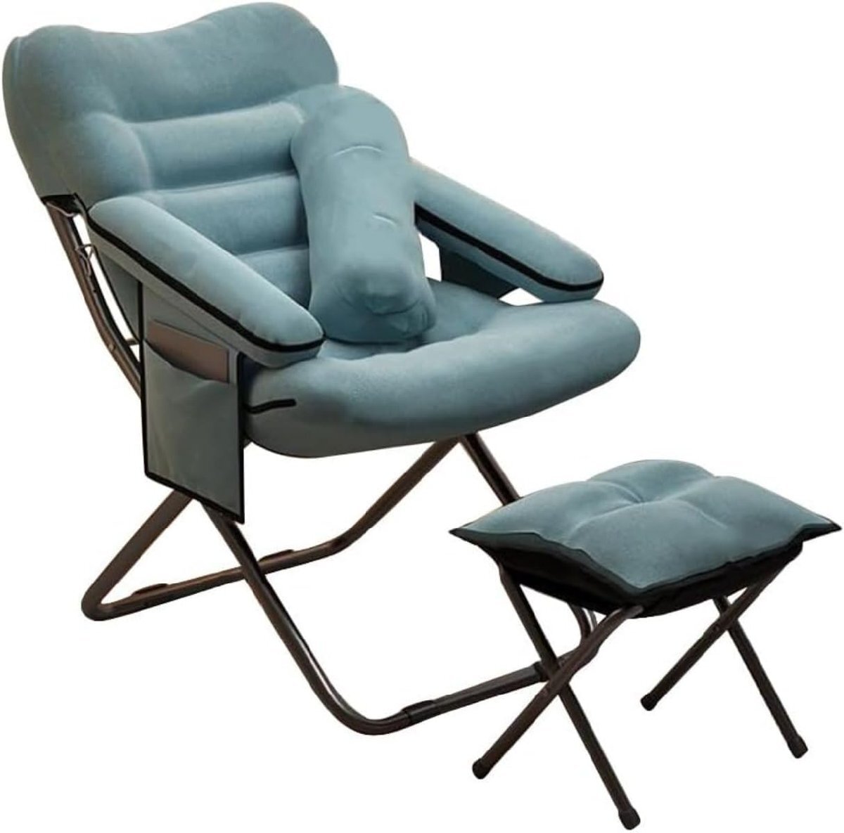 リクライニングチェア 折りたたみチェア アウトドアチェア リラックスチェア 角度3段階調節 (ブルーです,単椅子です+抱きまくら+足台)