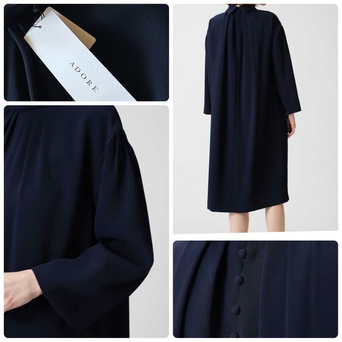 アドアらしいボックスシルエットに、ネックとスリーブに入ったタックギャザーやバックにずらりと並んだくるみボタンがアクセントに
