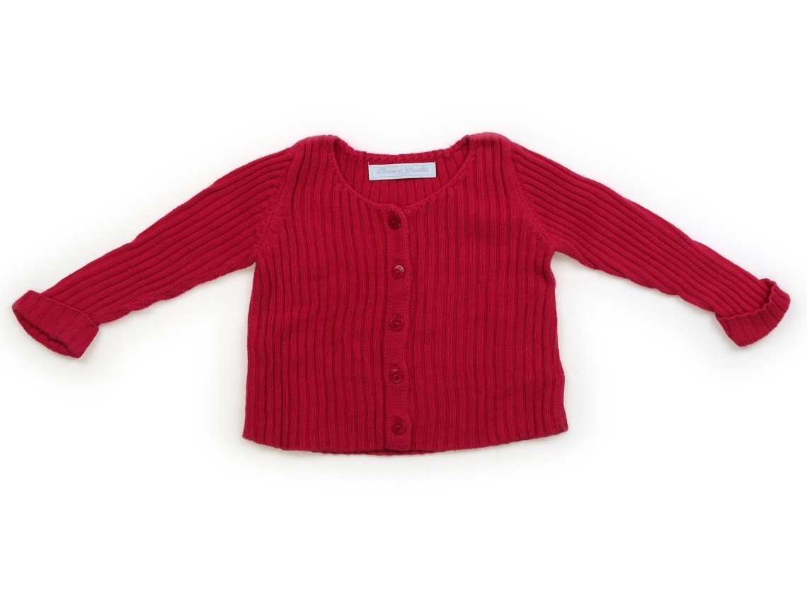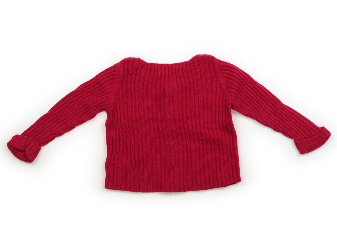 実際のサイズ表記はS。綿ニット。全体に色あせ・毛羽立ち、ヨレ感あり。普段使いにいかがでしょうか。予備ボタン付きです。