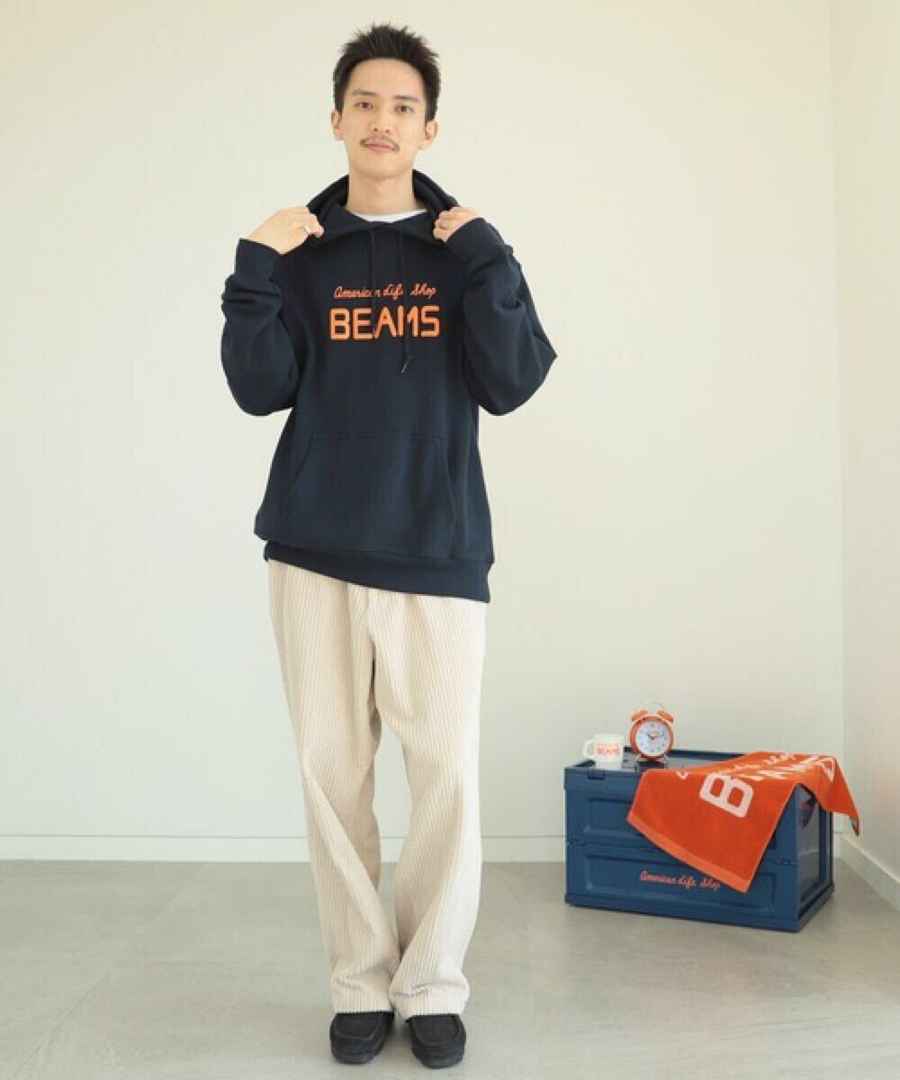 <BEAMS>のクラシックロゴを前面にプリントしたフーディー。ベーシックなシルエット、デザインなのでユニセックスでご着用いただけます。カラー違いでも持っておきたいスペシャルアイテムです。 初代の<BEAMS>ロゴをアニバーサリーイヤーに復刻した特別モデル