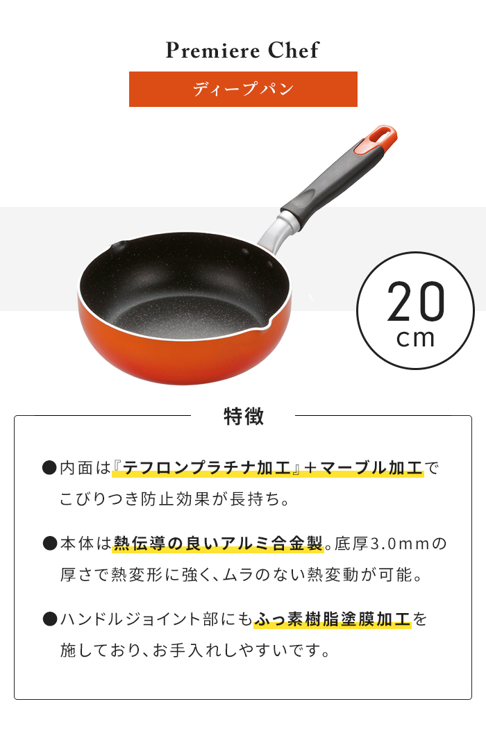 ディープパン IH対応 ガス火対応 20センチ 調理鍋 アルミ合金製 テフロンプラチナ加工 マーブル加工 熱伝導が良い 調理器具 アルミ製ディープパン 深型 調理器具 炒め鍋 優れた耐久性 高品質 熱変形に強い オール熱源対応 ガス火 IH こびりつきにくい お手入れ簡単 料理 お弁当 キッチン 台所 |