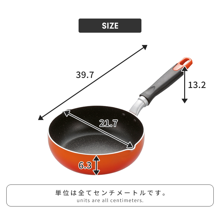[本体]アルミニウム合金(底厚3mm) [貼り底]ステンレス鋼 [ハンドル]フェノール樹脂 |