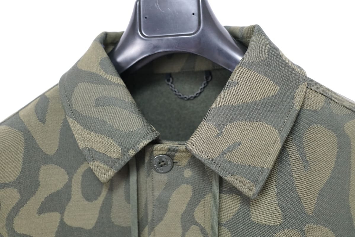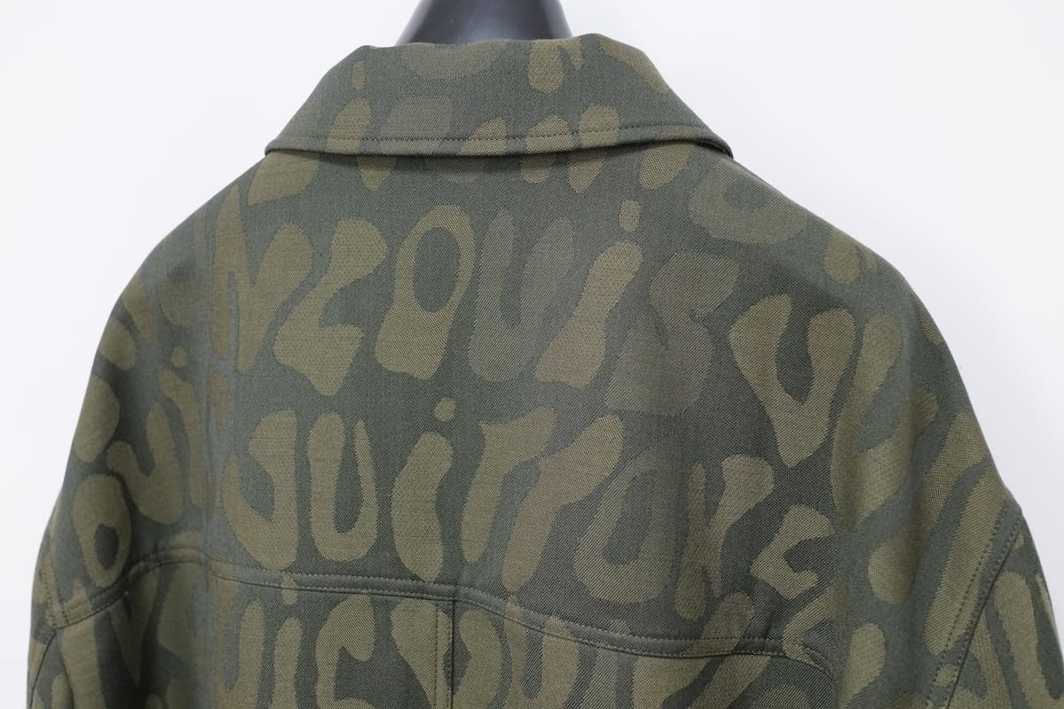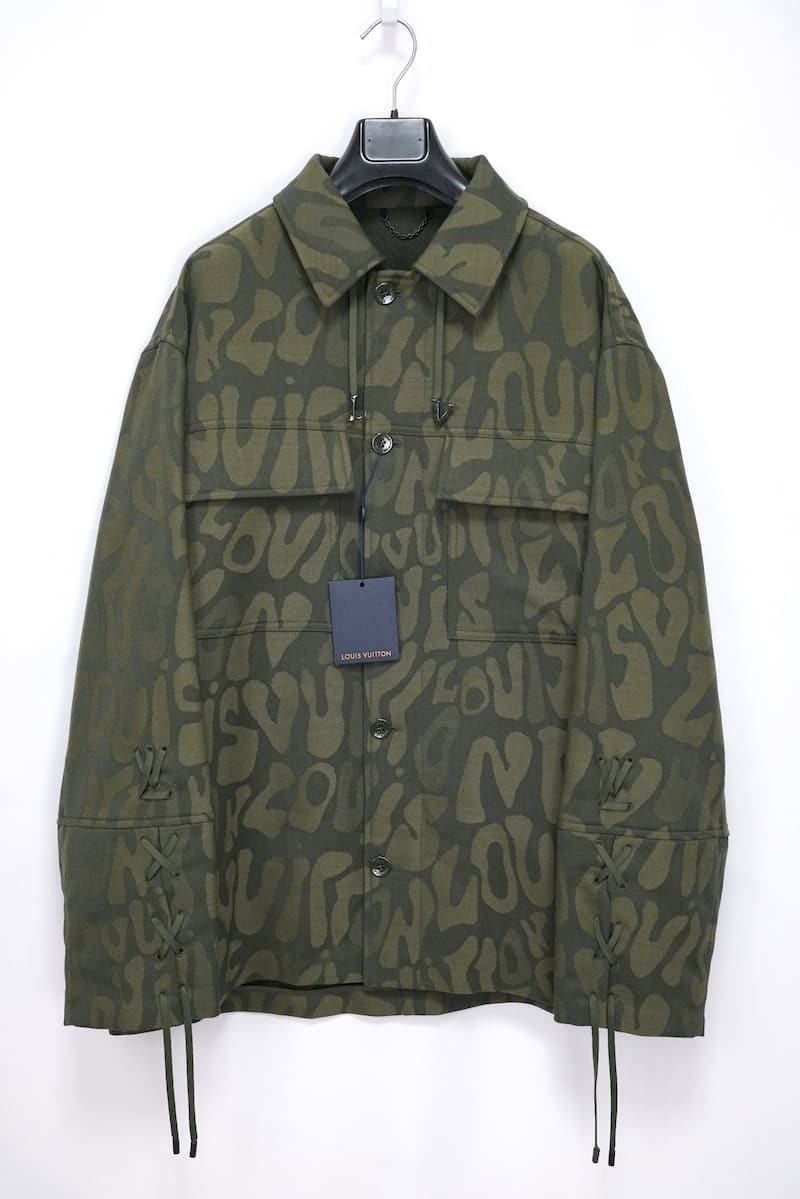 23SS LOUIS VUITTON ルイヴィトン レース ウール オーバー シャツ 総柄 ミリタリー ジャケット オリーブ 1AAUT9/ RM231M S70 HOB02E 【中古】新古品