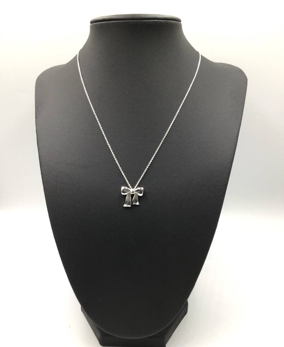 ご覧頂き有難う御座います。 トラブル防止の為、ご入札の前に必ず説明文等最後までお読みになりご理解の上入札宜しくお願い致します。 気持良く使って頂け為に、超音波洗浄・クリーニング・ 磨き・3DUV紫外線消毒99.9除菌をおこなっております。 アフターケアー用、クロス拭き1枚付(約7.5×7.5㎝)プレゼント 商品真贋鑑定済みでございますのでご安心してご購入下さい。 【ブランド】 TIFFANY&Co. ティファニー 【商品名】 リボンモチーフ シルバー925ネックレス 【カラー】 シルバー 【サイズ】 チェーン約40cm トップ約横1.5㎝x縦約1.4㎝ 【重量】 約2.9g 【付属品】 なし 【管理番号】 306965 【商品状態】 :A 薄い擦り傷ありますが、目立った傷がない商品なので活躍して頂けます。 N:新品/未使用品 S:新品同様綺麗な商品 SA:新品同様に近い美中古商品 A:多少の傷、汚れがみられますが、全体的に状態の良い商品 AB:多少の傷、汚れが多くみられる中古商品 B:傷汚れがみられる中古商品 BC:傷汚れが多くみられる中古商品 C:かなり傷汚れが多くみられる中古商品 E:難有/ジャンク扱い ◎お休みなども御座いますので、即発送希望の方は 自己紹介欄に記載いたしておりますので必ず御覧確認下さい。 | ||