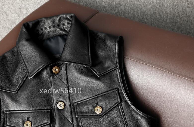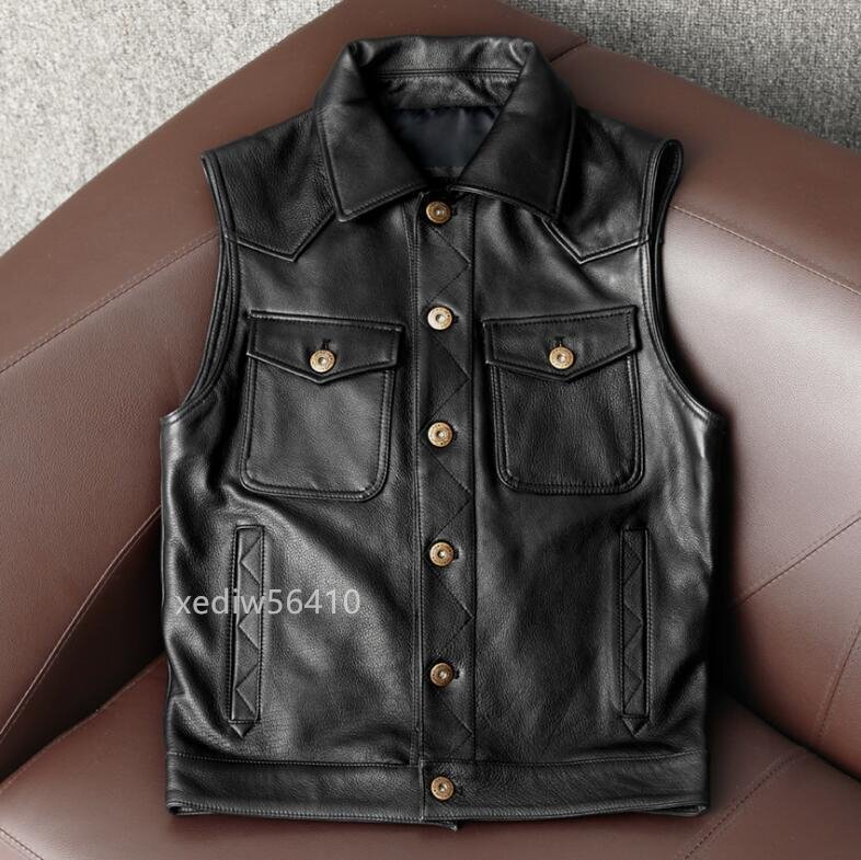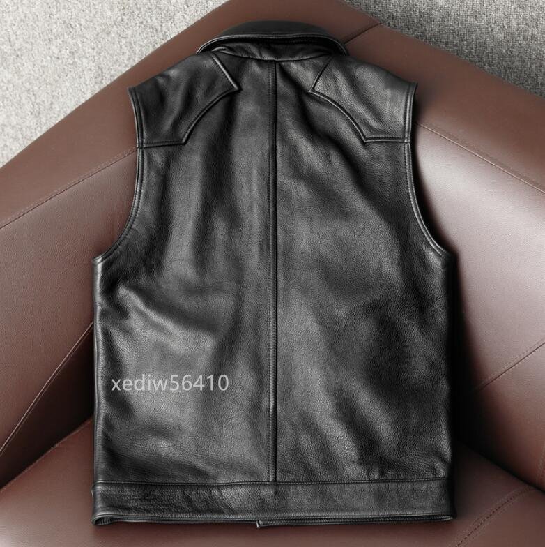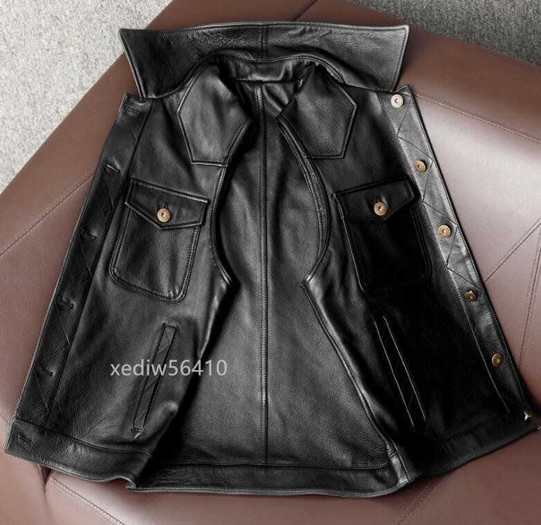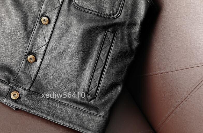 新品推薦 メンズレザー ジャーキン ベスト 本革 牛革 バイクジャケット ライダース  S~4XL  黒