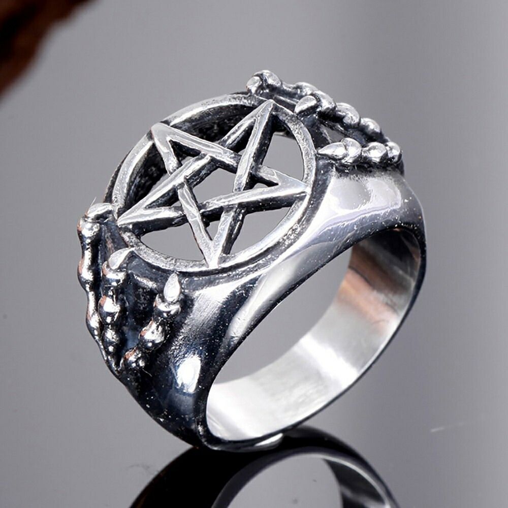 リング 五芒星 スカル 骨 手 指輪 シルバーアクセサリー ヒップホップ アクセサリー ジュエリー ジュエル jewel レゲエ クラブCLUB メンズ 男女兼用 HIPHOP ヒップホップ系 ストリート系 B系 ギラギラ 縁起が良い 開運 金運 成功 神様 風水 飾り物 誕生日 キラキラ バー ラッキー 幸運 高級 ジュエリー 幸せを運ぶ シンプル 戒め ダーク ゴシック 悪魔 デビル リッチ 骸骨
