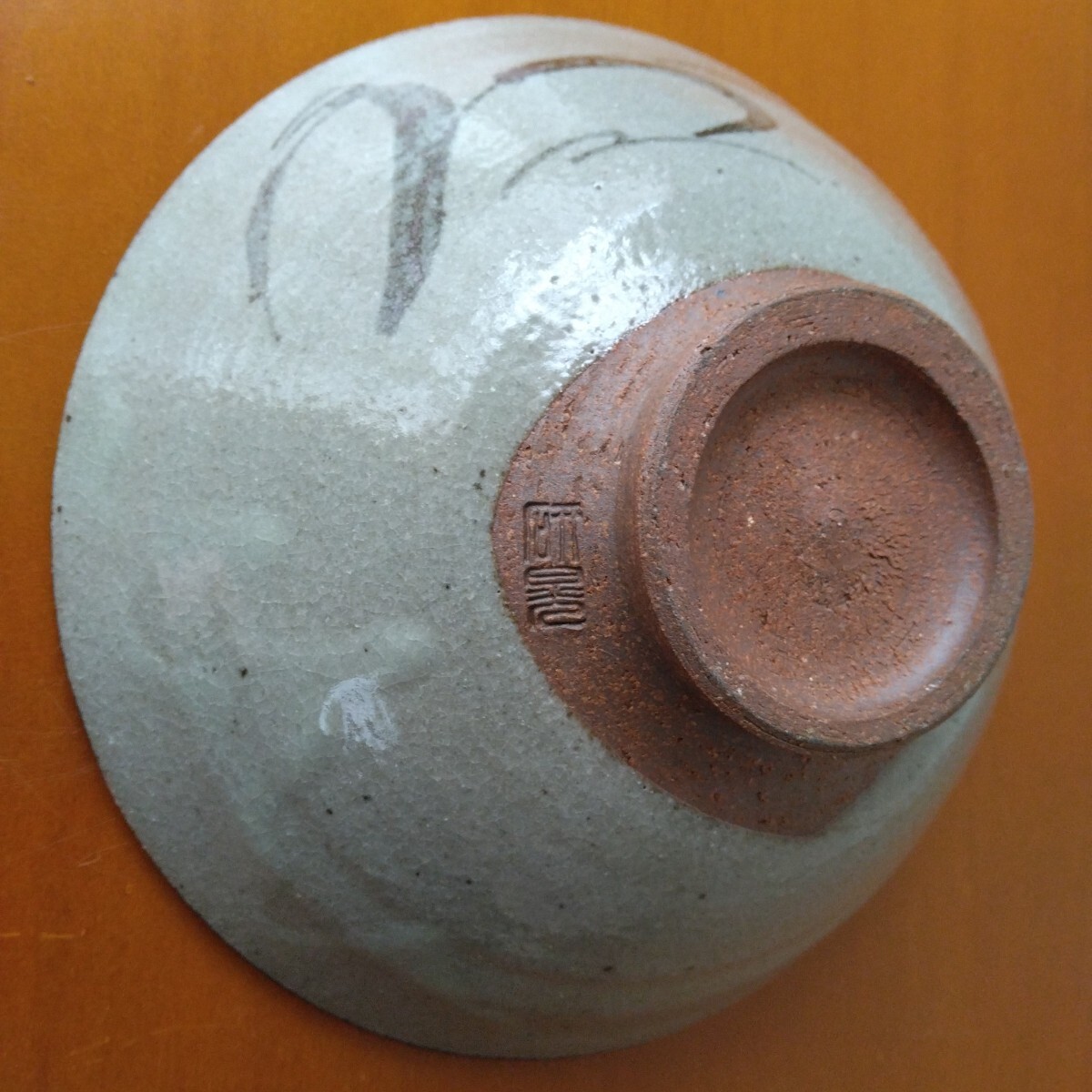 【未使用】抹茶碗/唐津焼/アサガオ型/在銘/陶印/茶道具/茶器/茶碗/絵唐津/植物模様の刷毛目/陶器/作家物