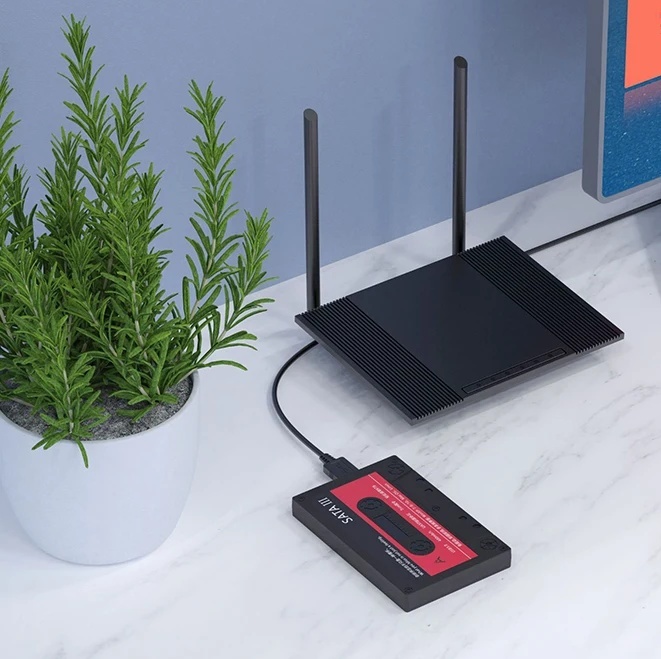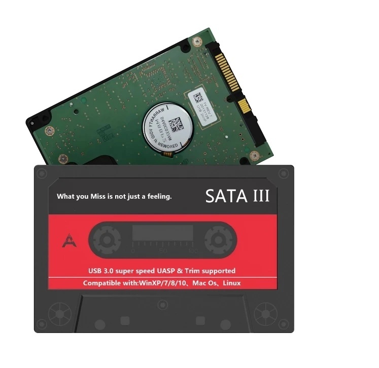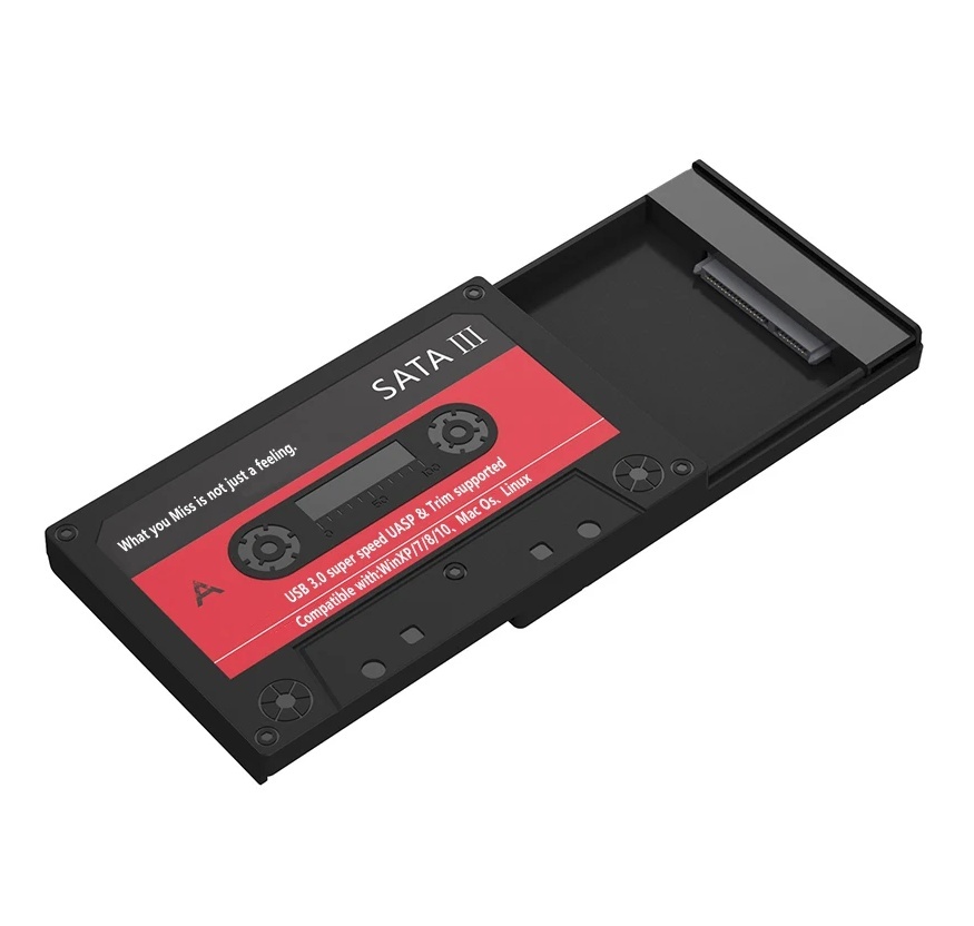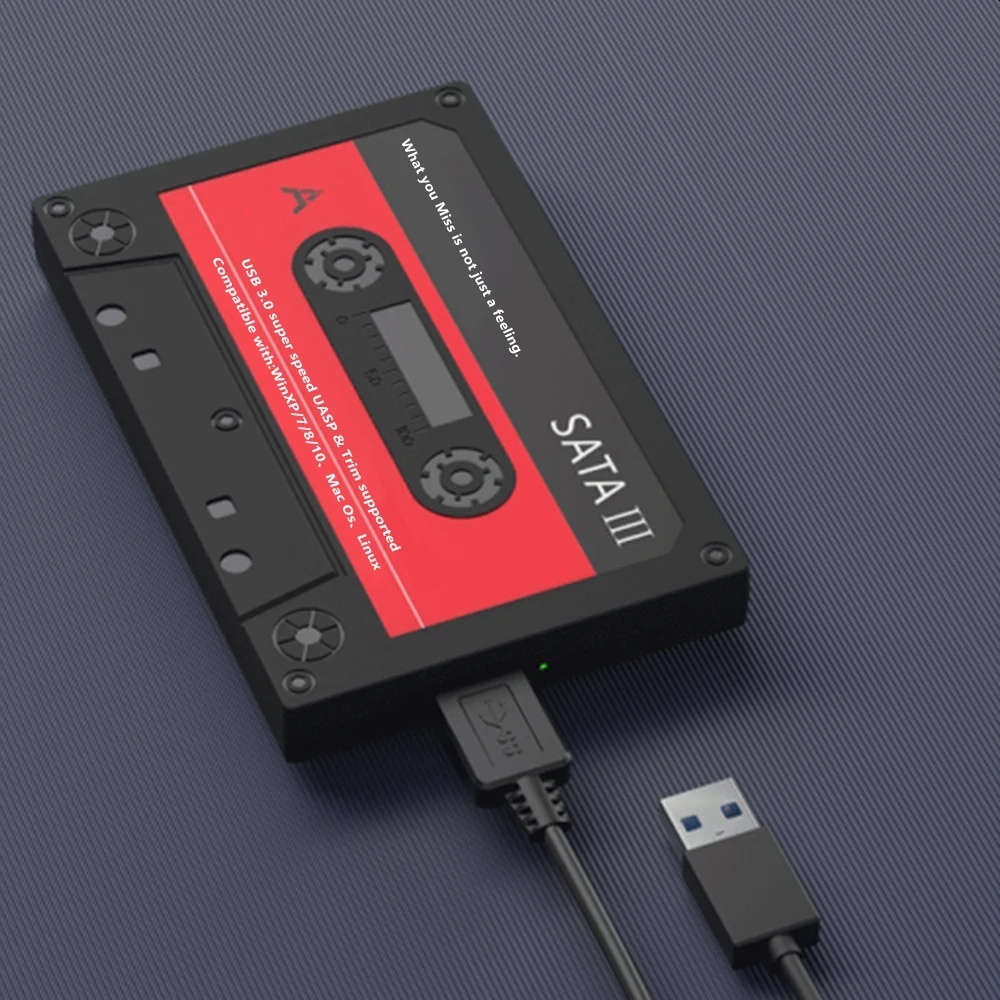 カセットテープ風のレトロデザインが人気のHDDケース。
