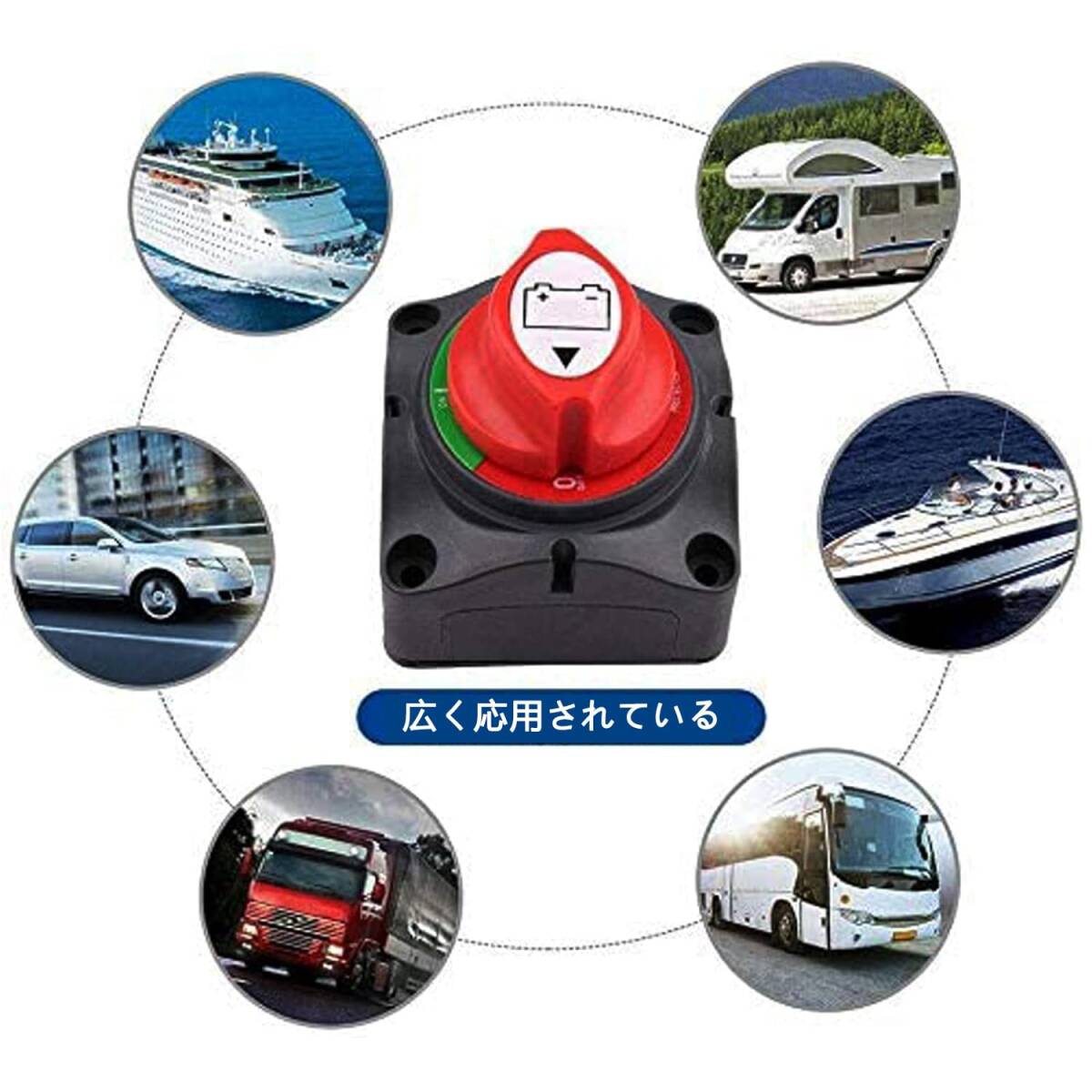 • 【広く使用】電池を安全に切り離すことができ、自動車、船舶、キャンピングカー、トラベルトレーラー、トラック、マイクロバス、マリンボート、電池パックだけでなく、点滅ライト、シャーシライト、フォグライト、ドームなどの電気機器のスイッチにも幅広く使用できる。