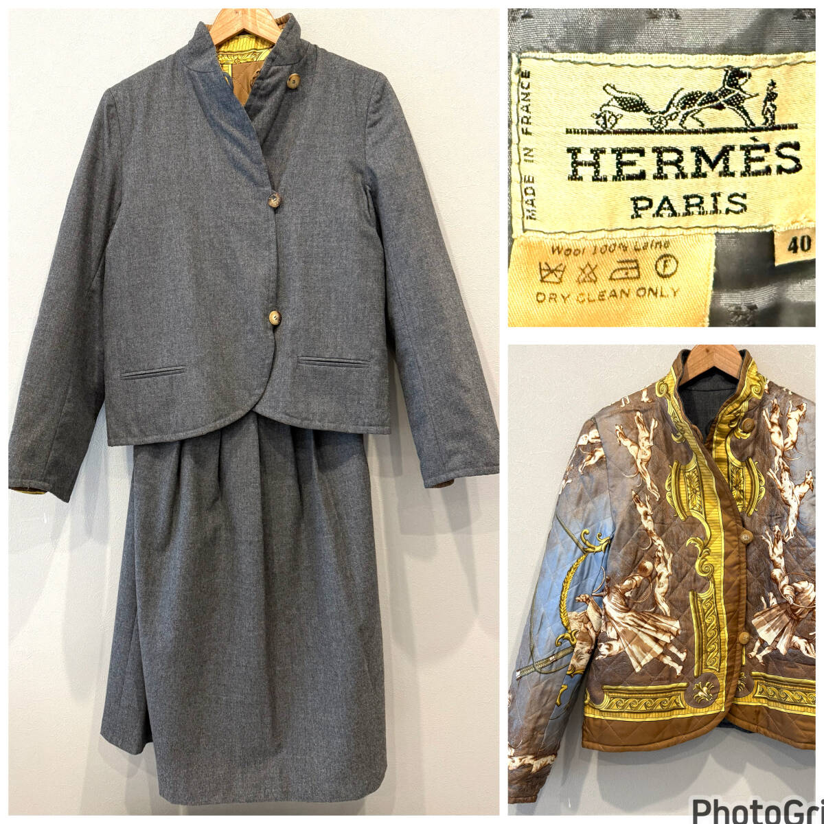 HERMES セットアップ リバーシブル ジャケット スカート エルメス レディース