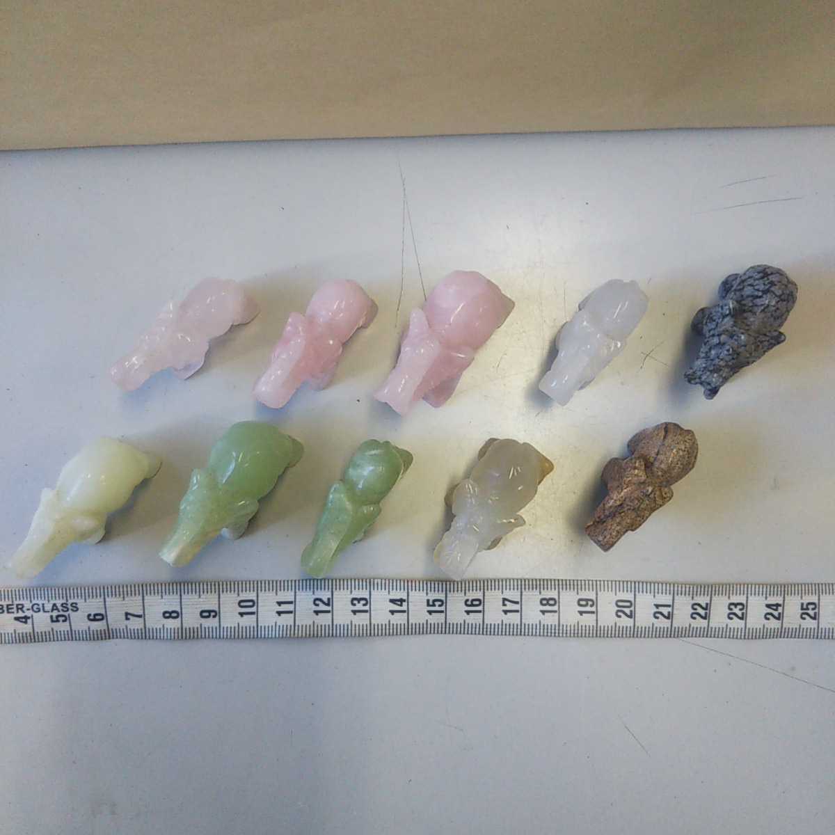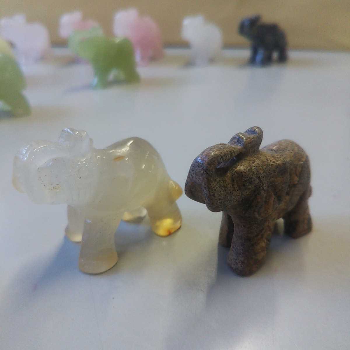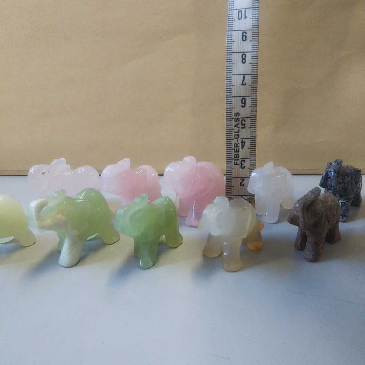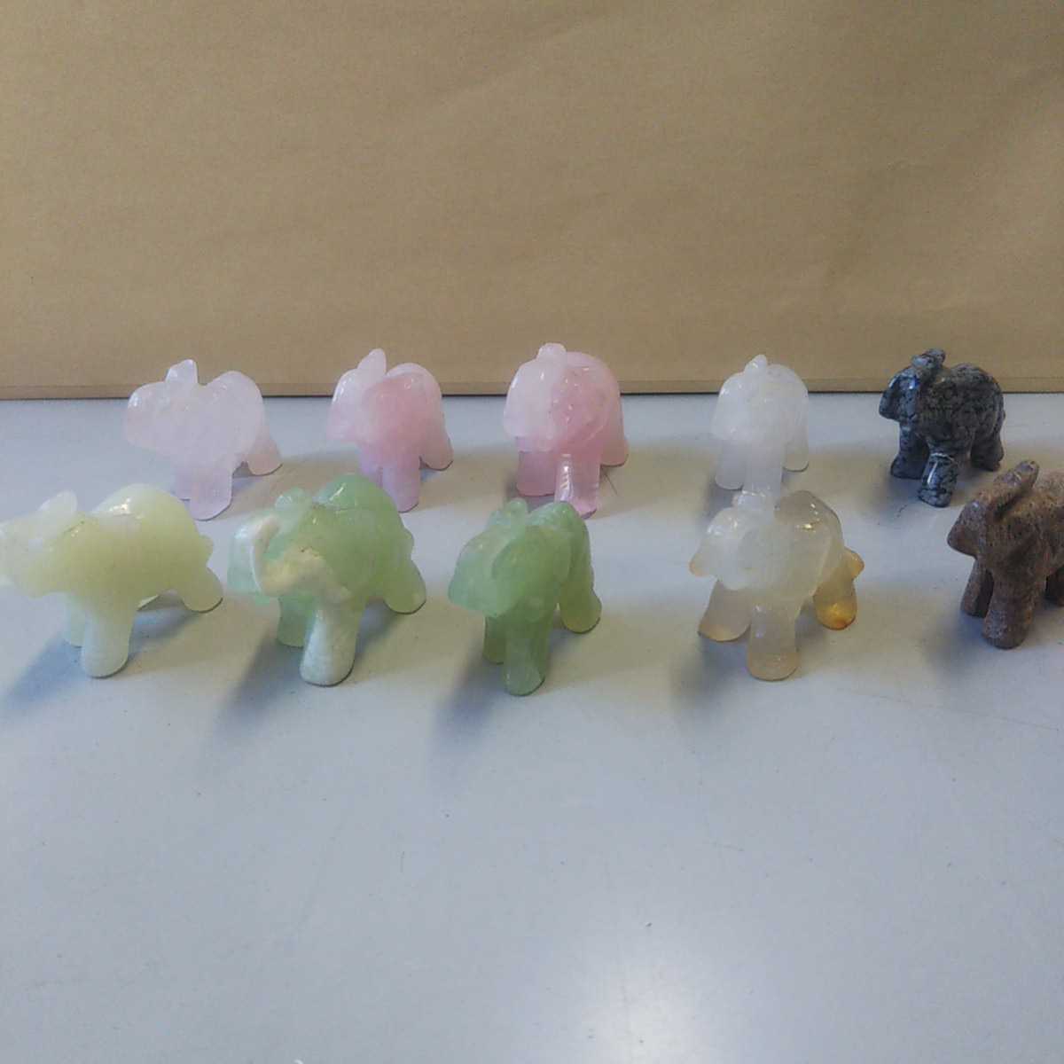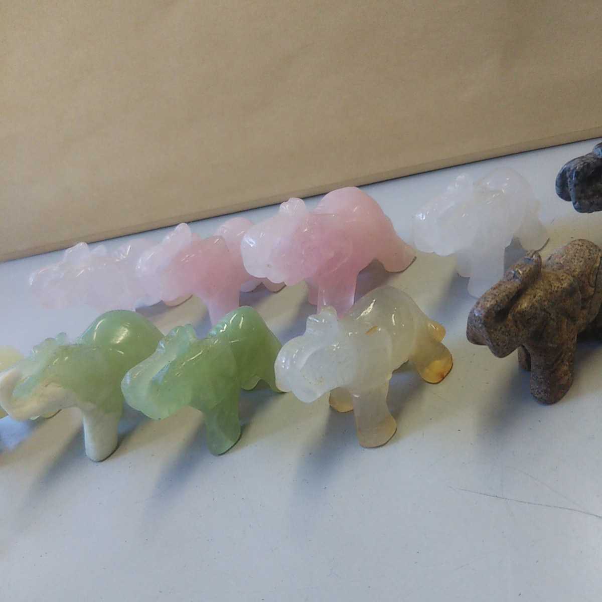 ゾウのパワーストーンです。全部で10体ありますが、1つ黒のぞうさんの足が折れてます。おまけとして考えて下さい。コレクションの一つにいかがでしょうか、中古ですので神経質な方はご遠慮下さい。他にも色々出品しておりますのでご覧下さい。