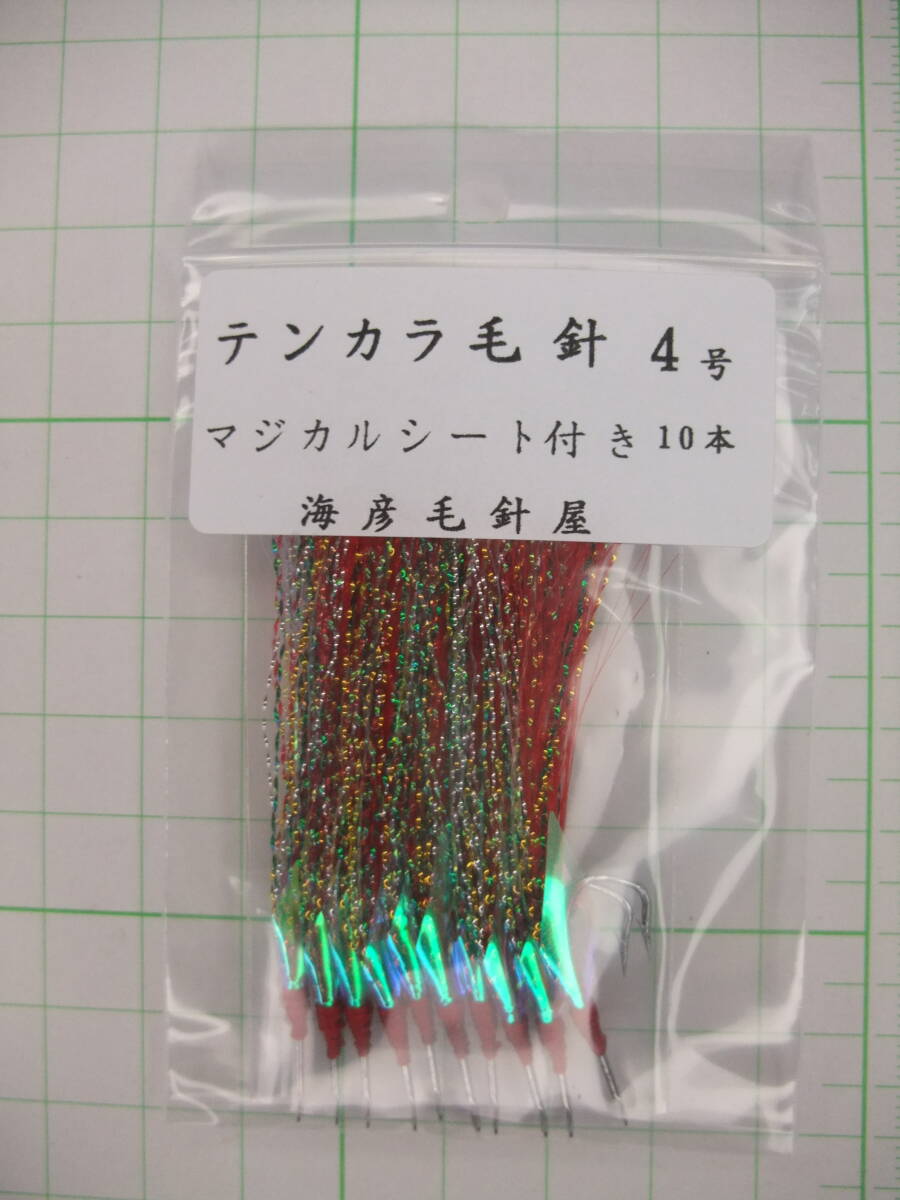 4AM テンカラ毛針4号 イソ縄毛針 オキメバル  赤フラッシャー マジカルシート付き 10本セット