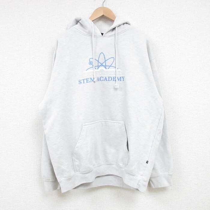 【商品名】 XL★古着 長袖 スウェット パーカー メンズ STEM ACADEMY 薄グレー 霜降り