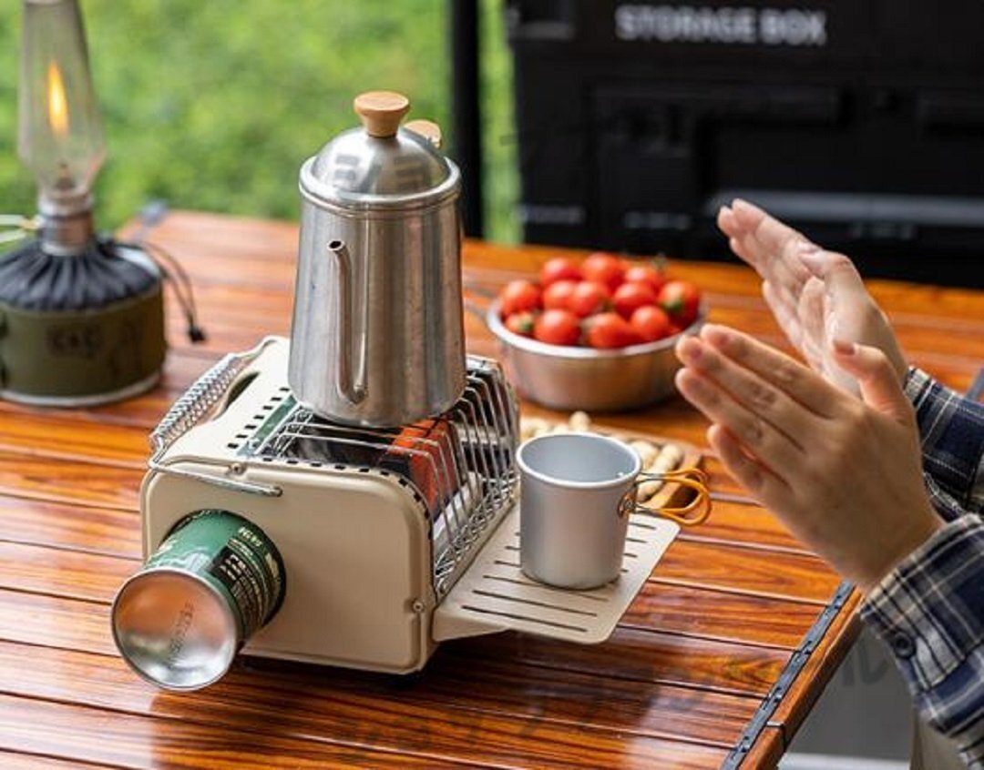 キャンプ用 多機能暖炉 ガスバーナー ストーブ ヒーター 1000g 18x16x13cm 小型 1200w CB缶 収納ケース付 アウトドア 野外登山木
