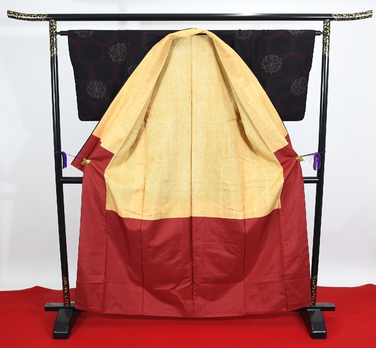 サイズ | ▼身丈 (背中から) 157cm ▼裄丈 64cm ▼袖丈 49.5cm ▼後巾 30cm ▼前巾 23.5cm |
