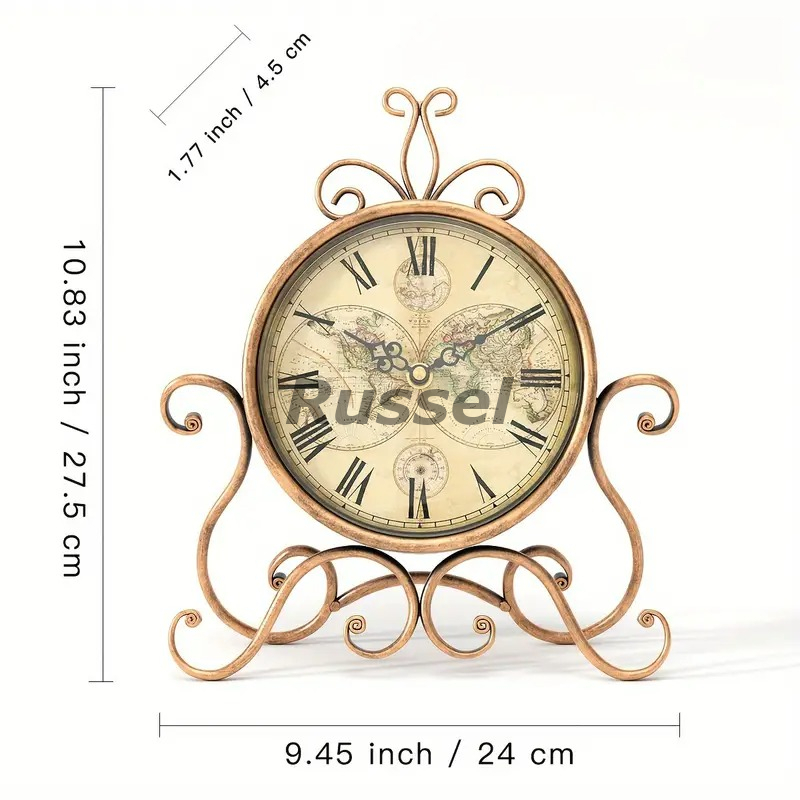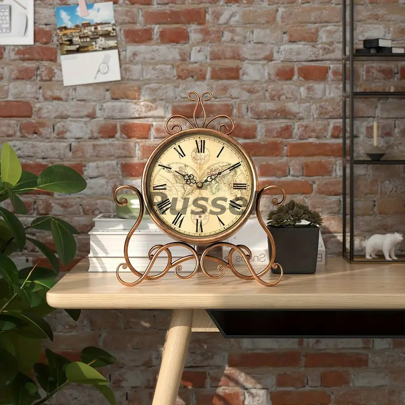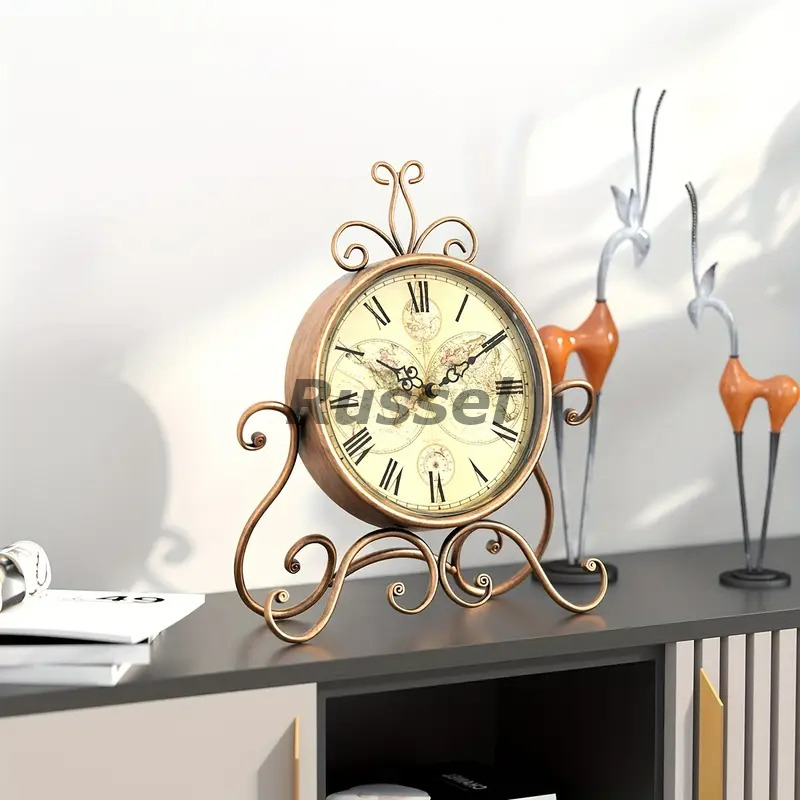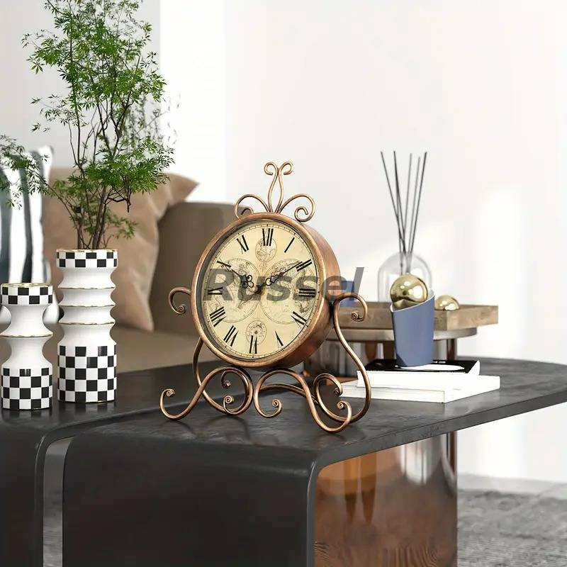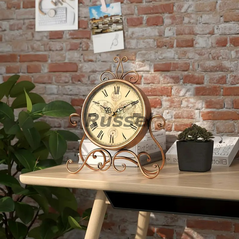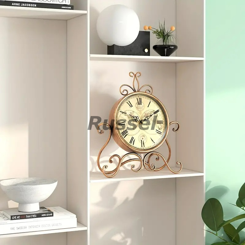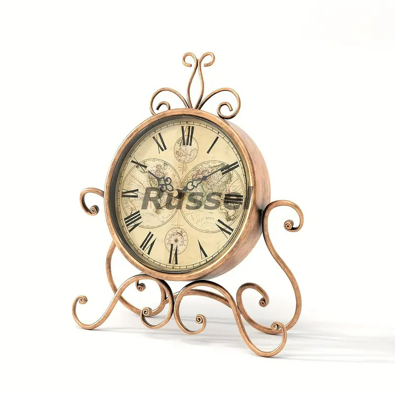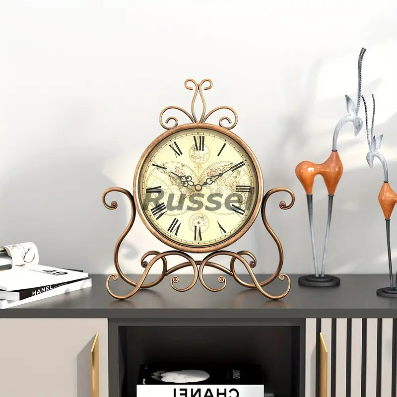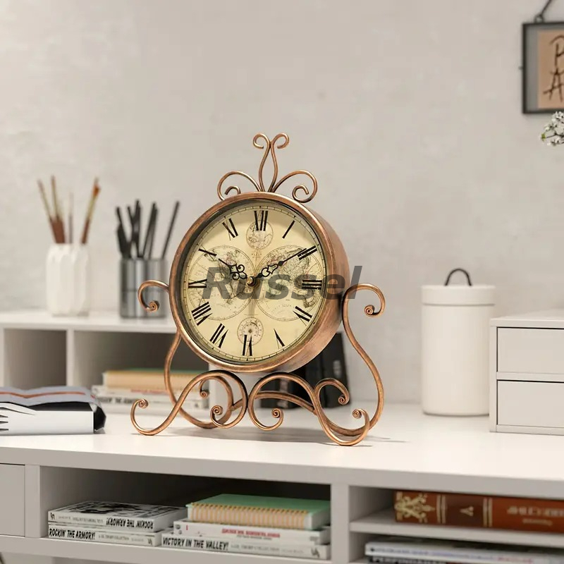 テーブルクロック 置時計 姫系 お洒落 レトロ調 エレガント クロック ヴィンテージ風 サイレント ブロンズカラー シャビーシック 4-7