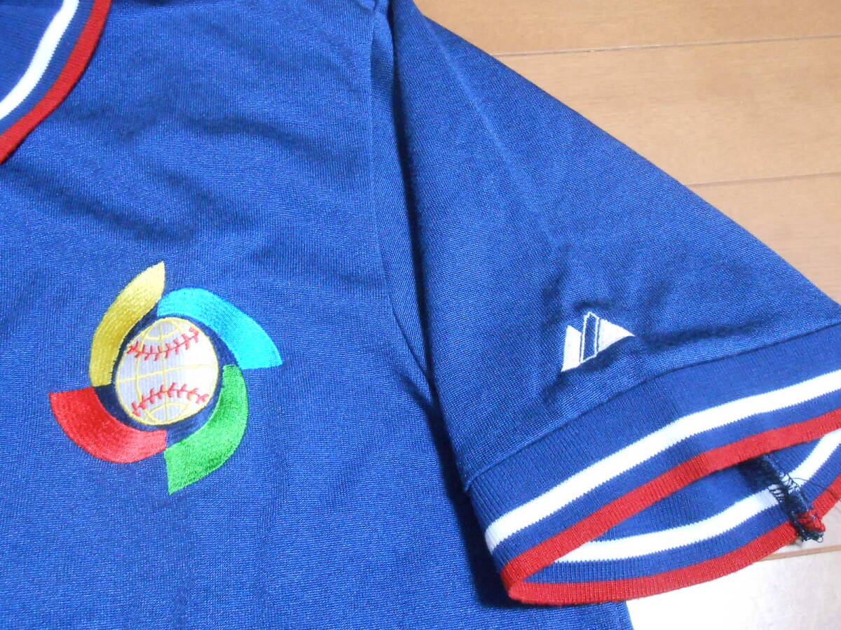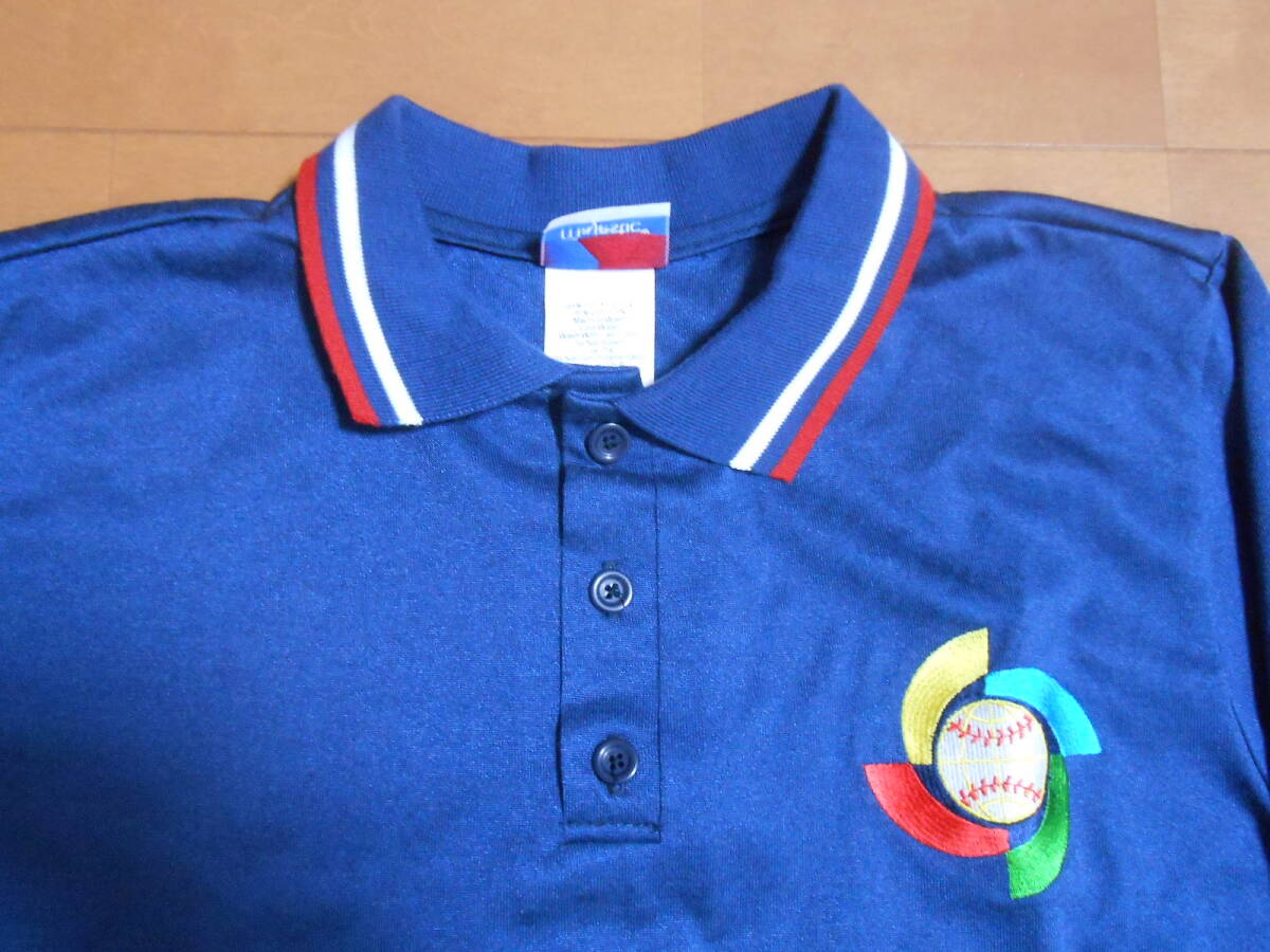 ■色は定番のネイビーで、襟と袖にホワイトとレッドのライン入り、左胸にWBC大会マーク刺繍。