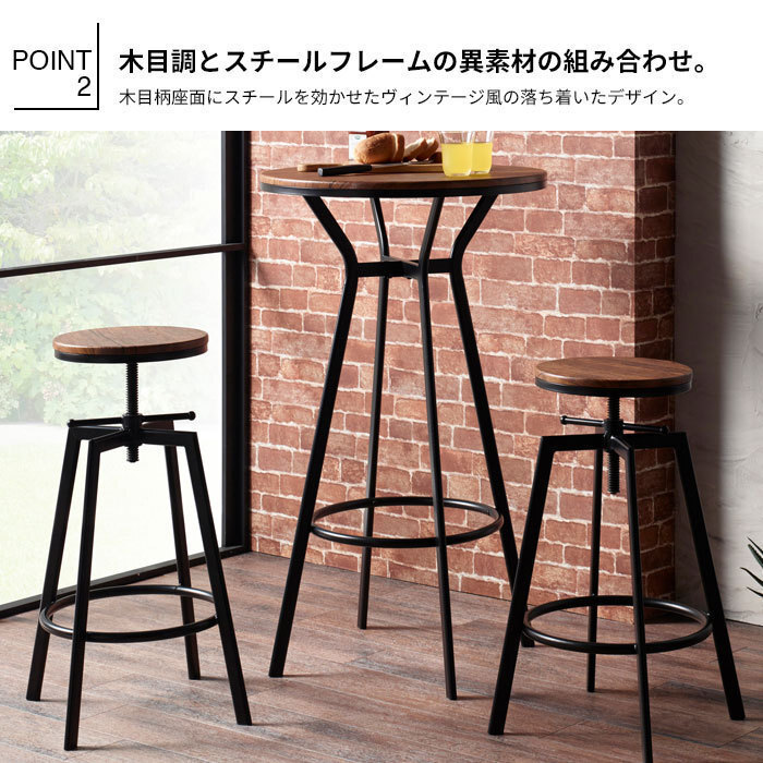 | 商品説明: | 木目をリアルに再現したヴィンテージ風の木目PVCとブラックカラーのスチールフレームを組み合わせたおしゃれなスツール。 【商品仕様】 ■製品サイズ:約幅50×奥行50×高さ61.5~75.5cm [座面サイズ]約φ30cm ■重量:約5kg ■材質:天板:MDF (15mm厚) 塩ビシート真空成型 フレーム:スチール (15×30mm楕円) 粉体塗装 ■特徴・機能:◇座面を回転させることで高さ調整が可能。 ■組立区分:完成品 ■生産国:中国 ■カラー:ブラウン ■キーワード:カウンター バー 木製 スチール スツール 丸 円形 丸スツール 丸椅子 いす イスハイスツール 直径50cm 高さ61.5~75.5cm カウンタースツール カウンターチェア バースツール 完成品 玄関 廊下 リビング 寝室 一人暮らし 新生活 店舗 企業 家庭用 寝室 |
