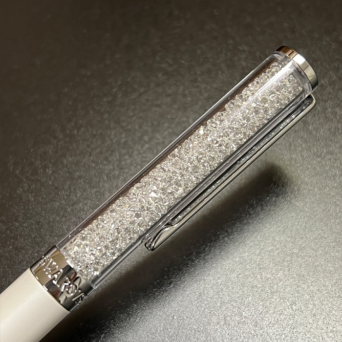 クリスタルを散りばめ、ホワイトのコーティングを施したボールペンです。 繊細なクリスタルが上品な輝きをもたらす洗練されたデザイン。