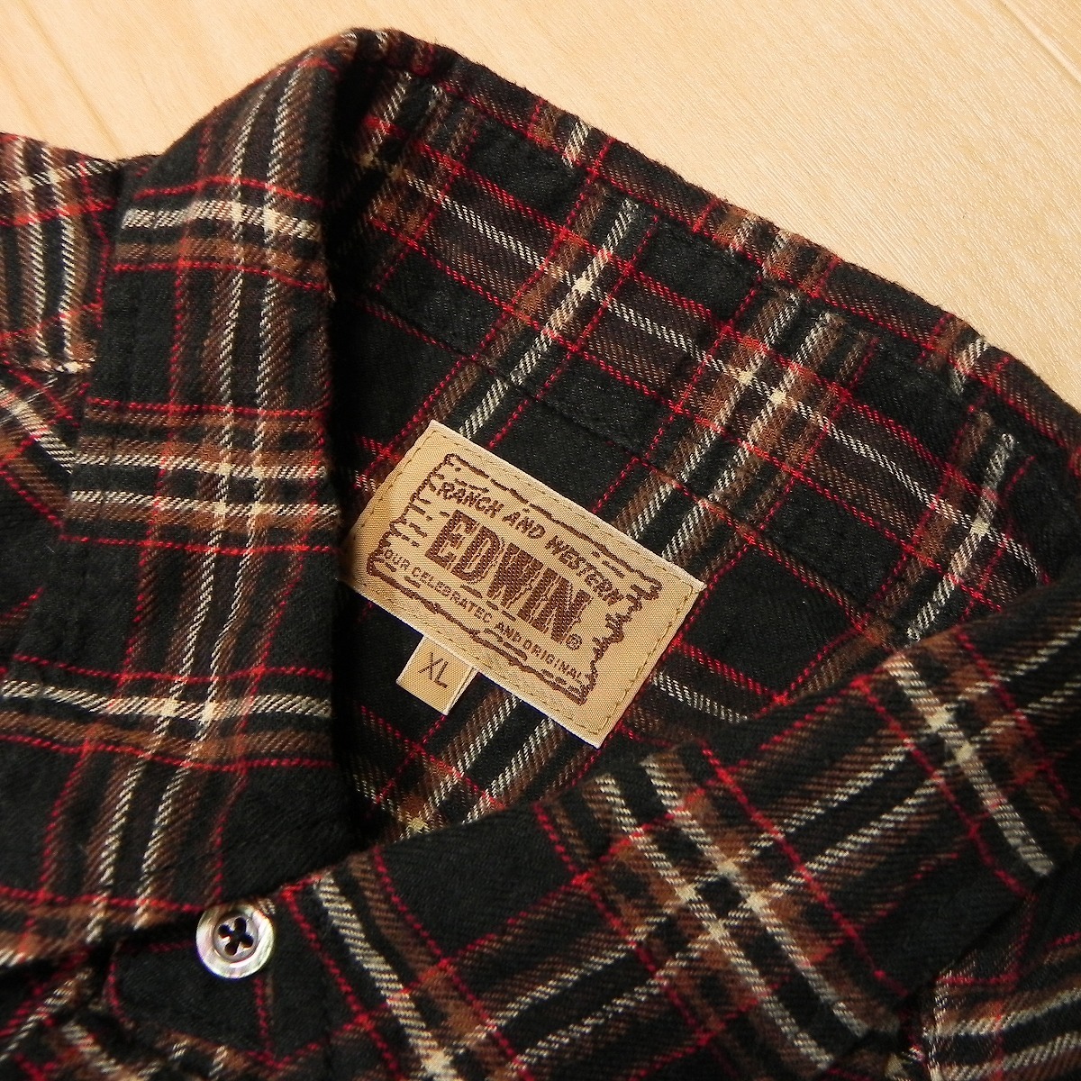 エドウィン EDWIN ライトネルシャツ チェック ネルシャツ XL(古着 状態良好)黒ベース 即決 ★h