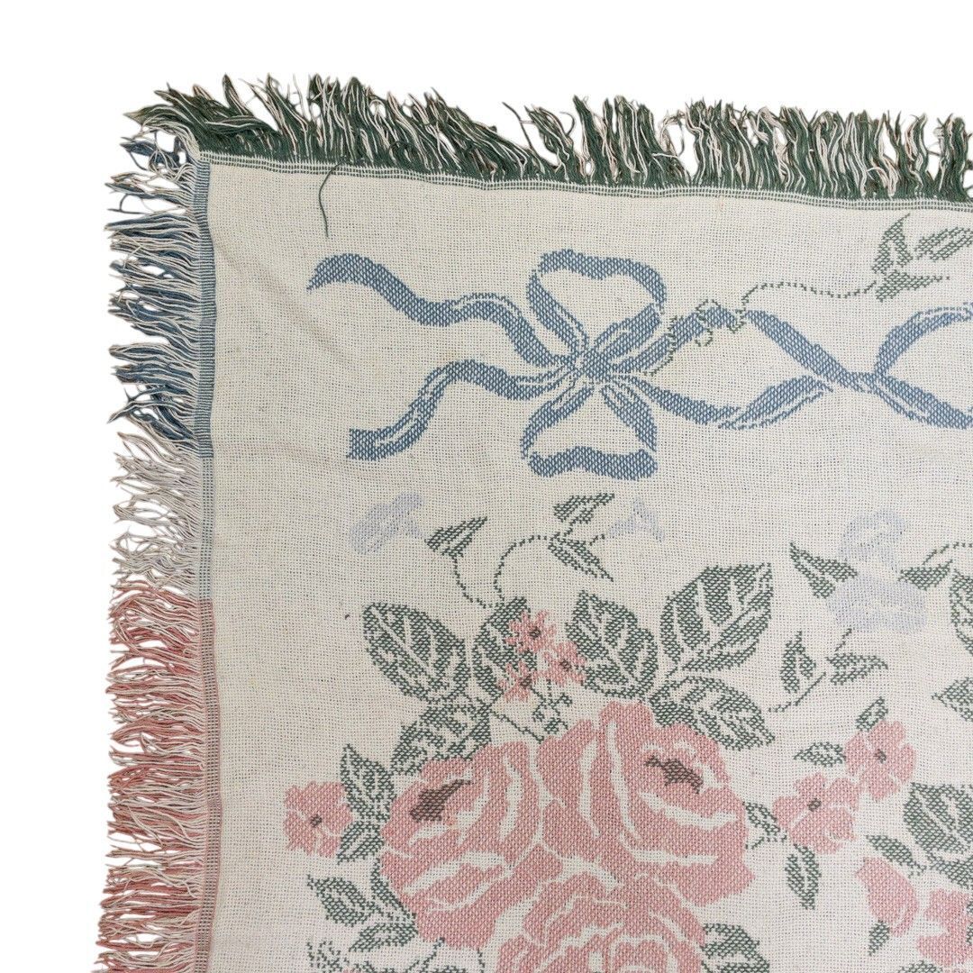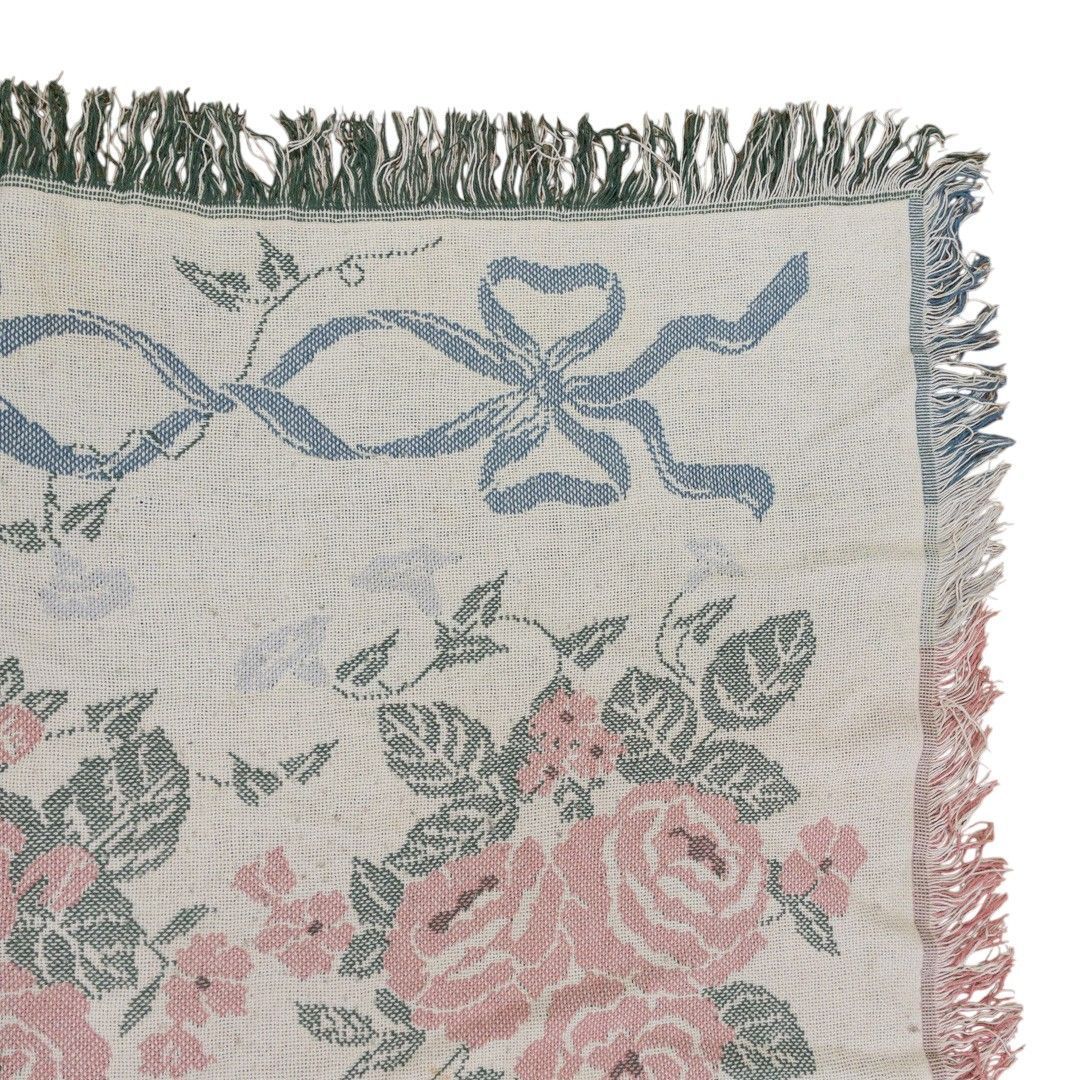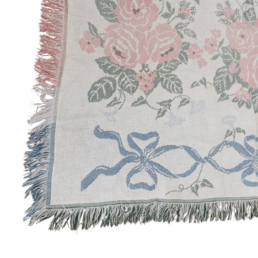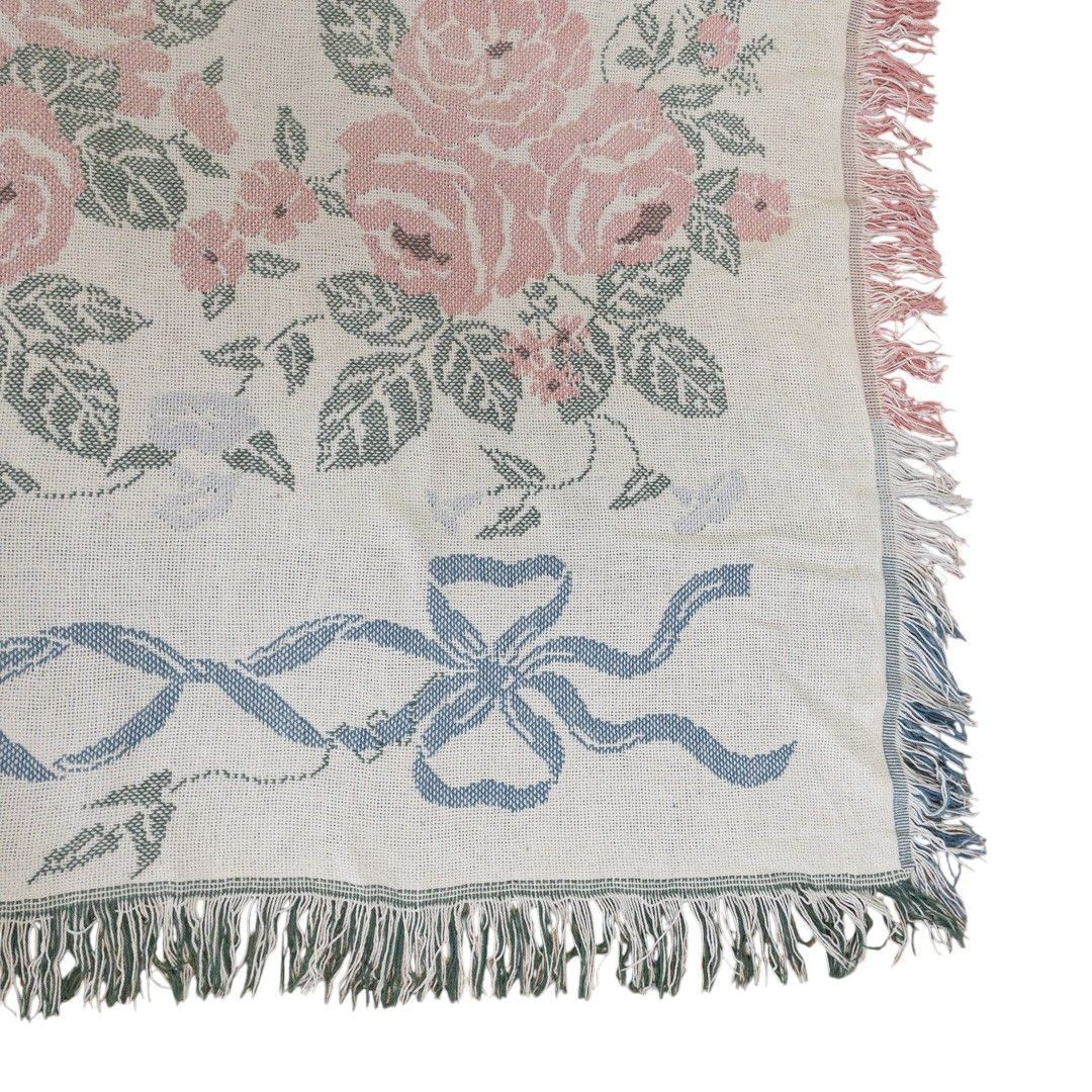 ■特徴:マルチカバー、タペストリー、MADE IN USA、薔薇、フラワー、花、リボン、コットン100%