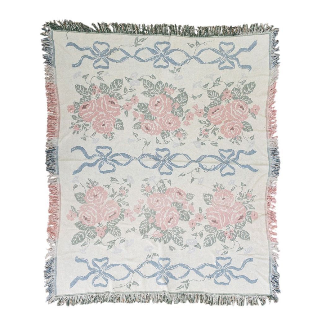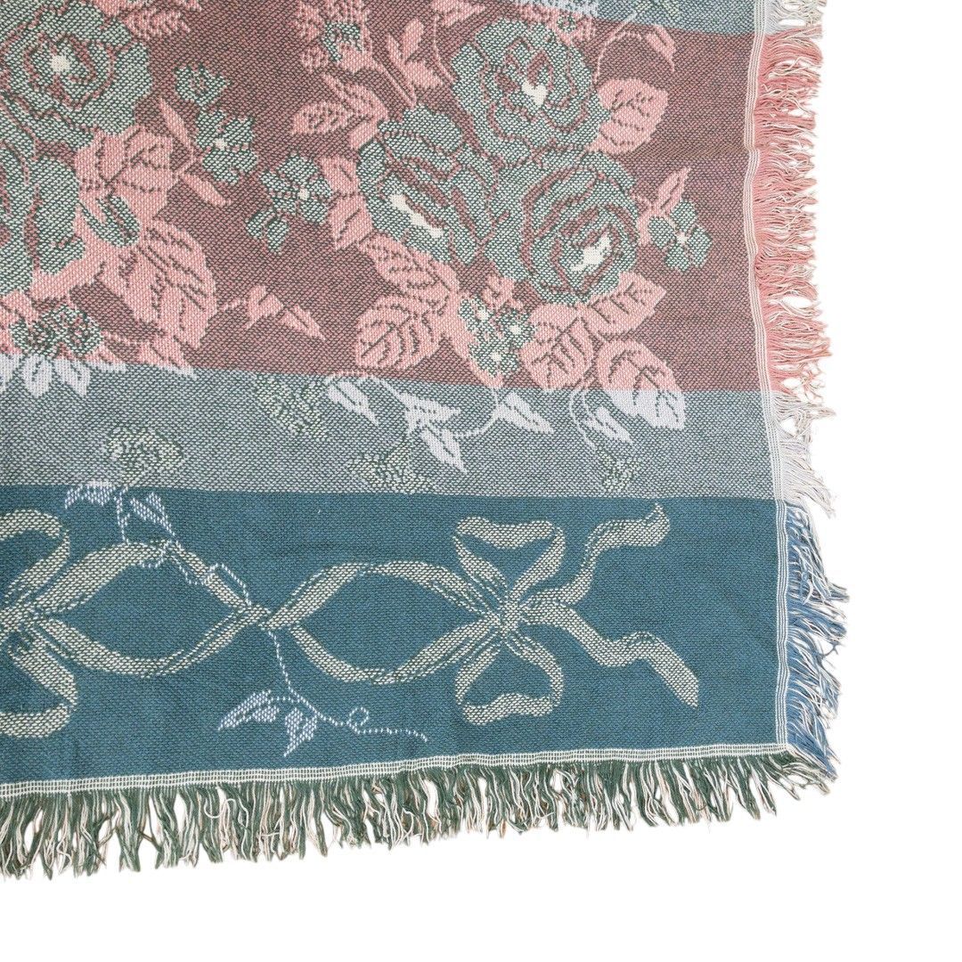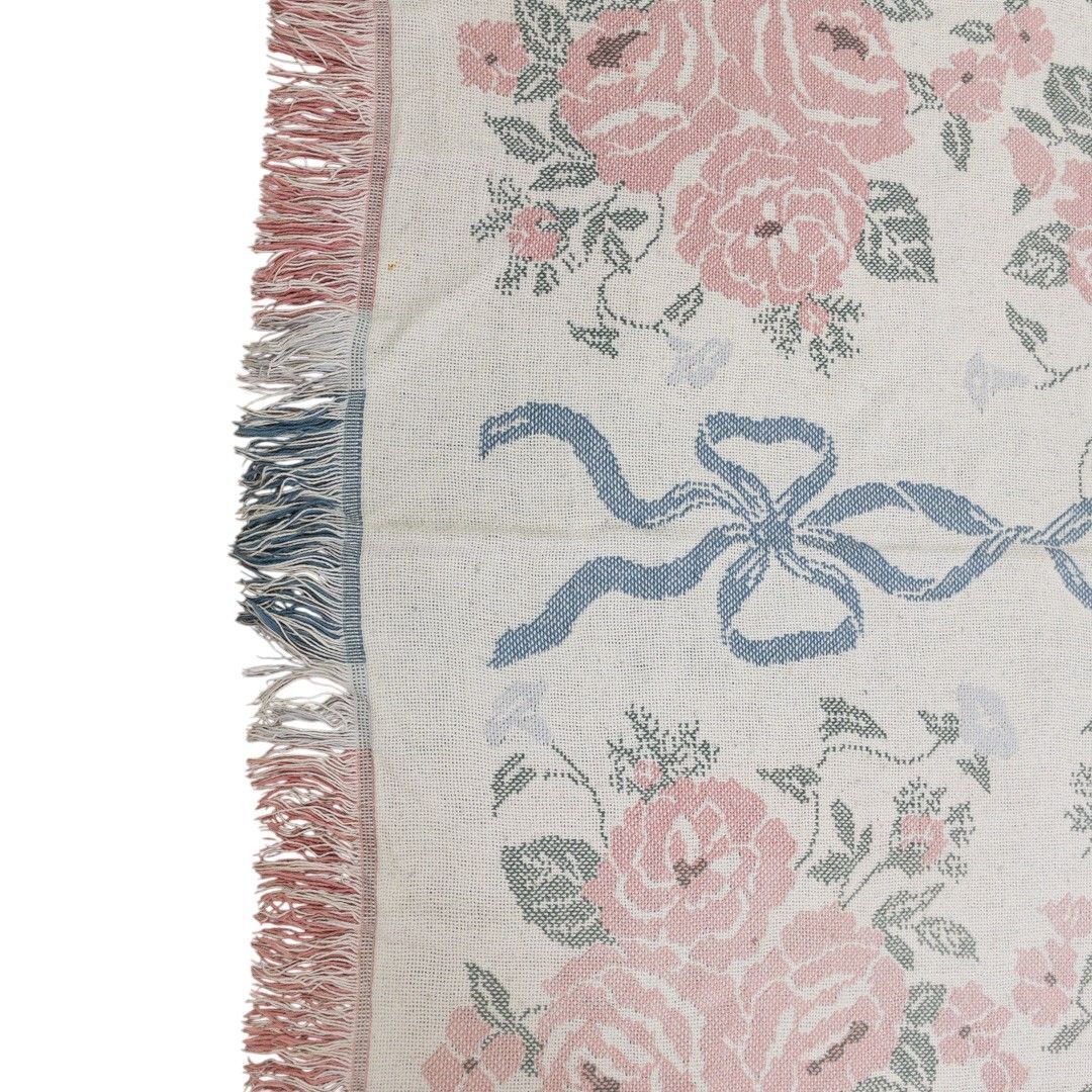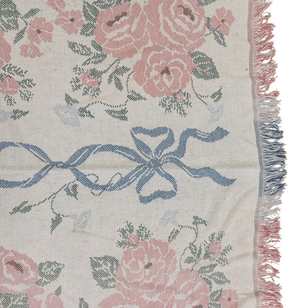 ■特徴:マルチカバー、タペストリー、MADE IN USA、薔薇、フラワー、花、リボン、コットン100%