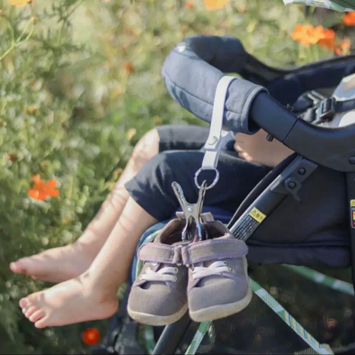 お散歩やお買い物時汚れたお子様の靴どこに入れようか迷いますよね!こちらのクリップはベビーカーやバックに取り付けられる便利なシューズクリップです♪タオルなども挟めるので色々なシーンで活躍できます!