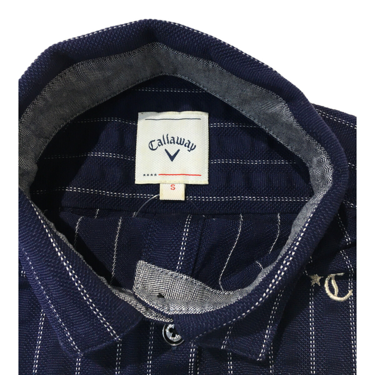 coco 中古【値下げ】 キャロウェイ Callaway レディース 長袖ポロシャツ S 紺 ネイビー ストライプ レターパックプラス発送可 97575