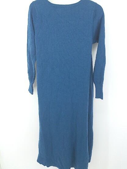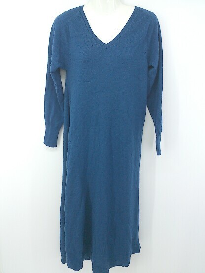 ◇ IENA イエナ シンプル 無地 Vネック 長袖 膝下丈 ニット ワンピース ブルー系 レディース P