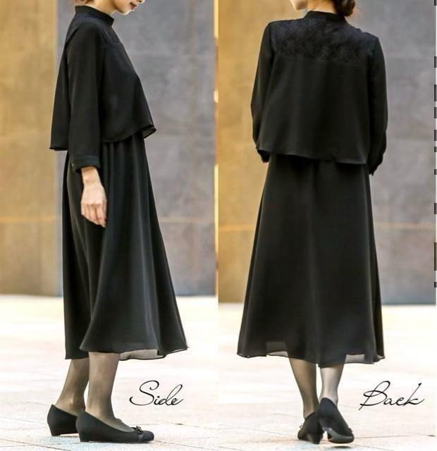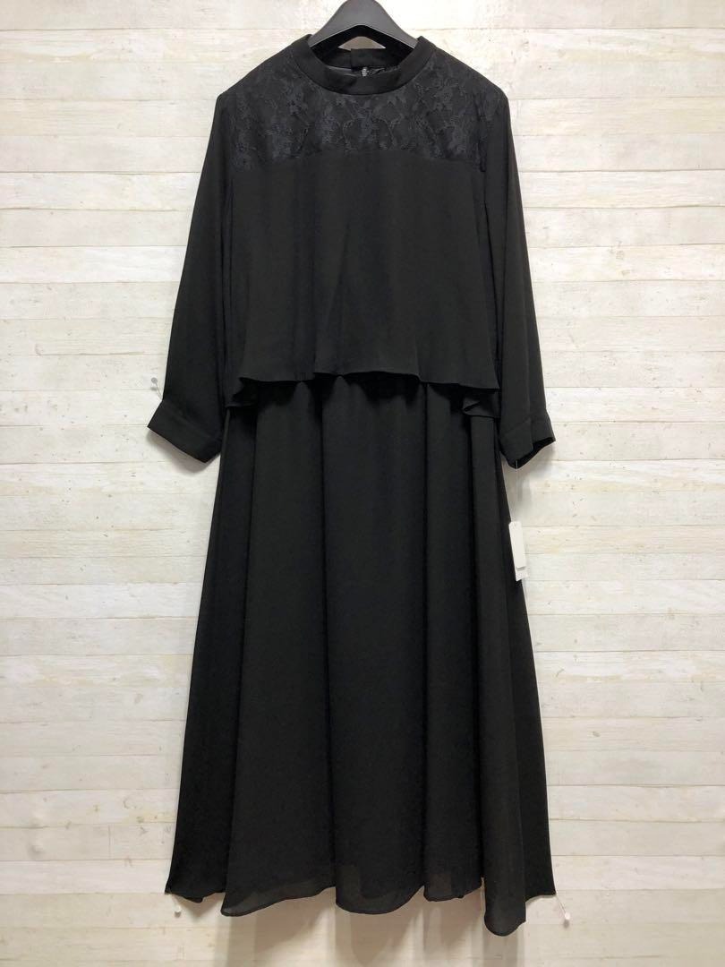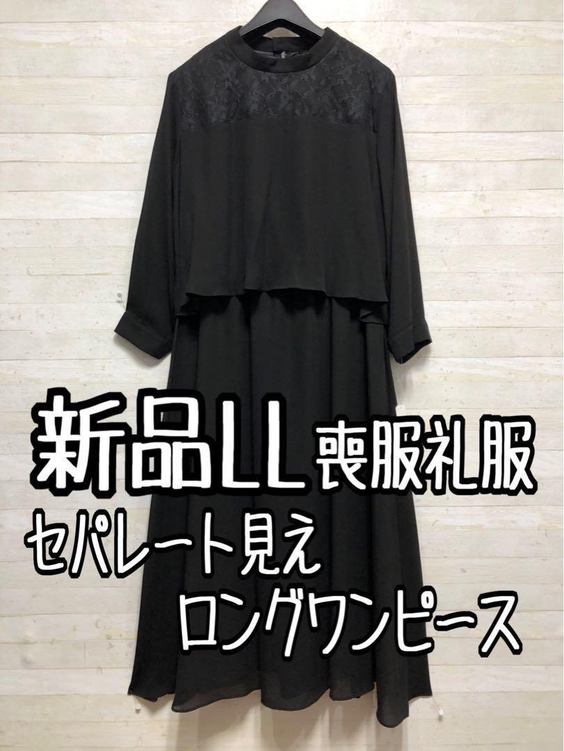 新品☆LL喪服礼服セパレート見えロングワンピース黒おしゃれフォーマル◯G136