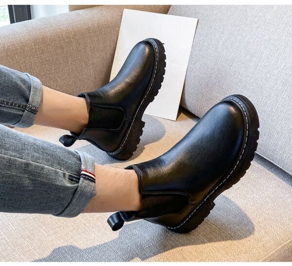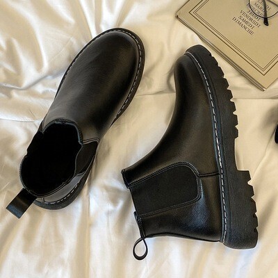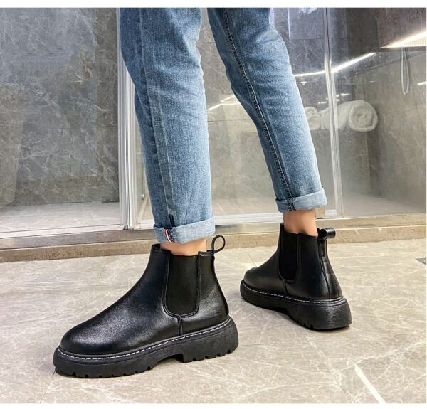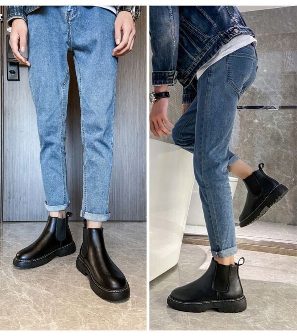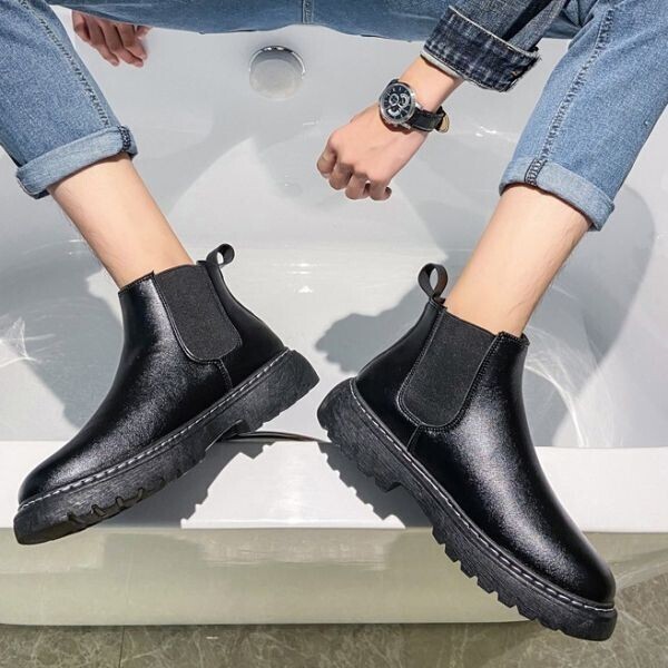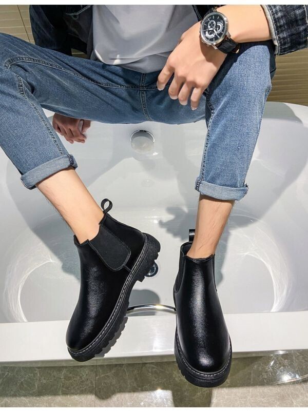 s107【27cm 黒】 サイドゴアブーツ 厚底 チェルシーブーツ カジュアルブーツ ショートブーツ PU レザー メンズ サイドゴア ブーツ