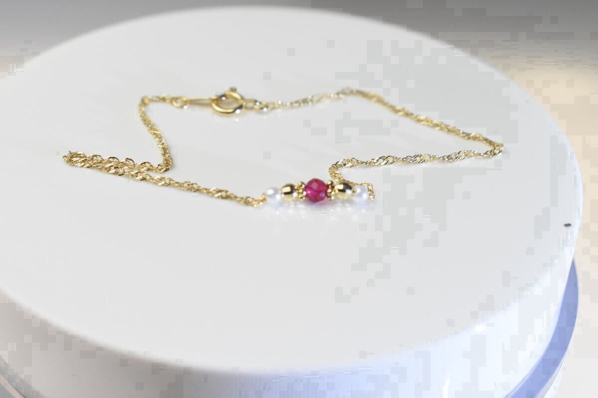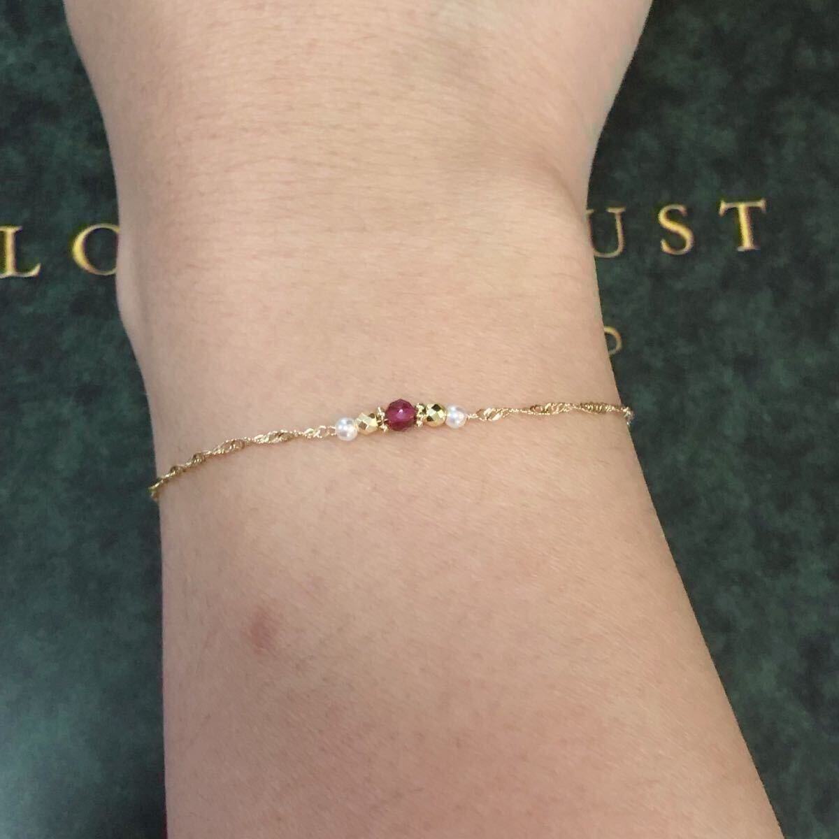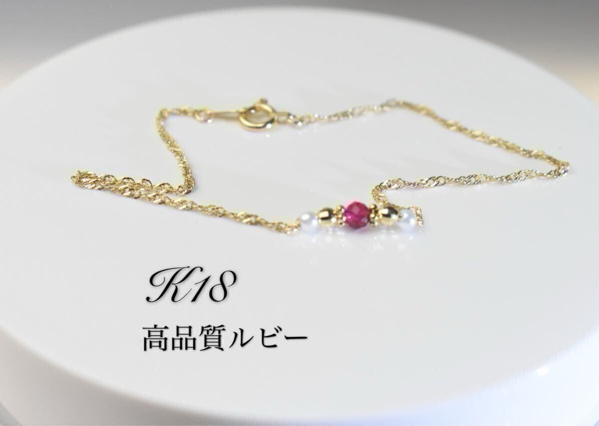 k18 18金 19cm ブレスレット ルビーブレスレット3mm アンクレット スクリューチェーン0.9mm 淡水パール2mm ミラーボール2.5mm