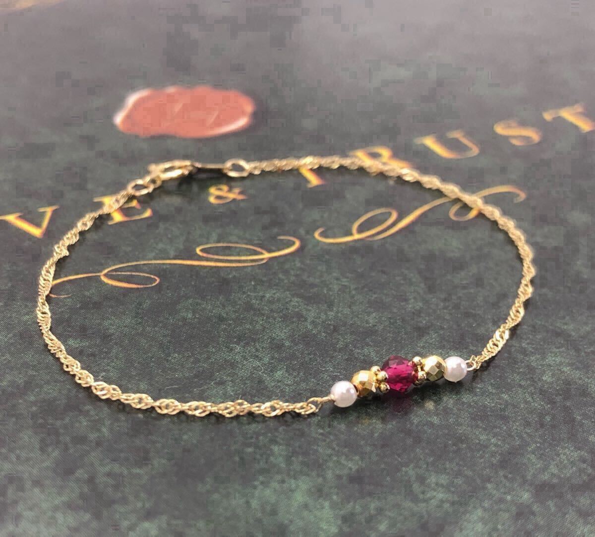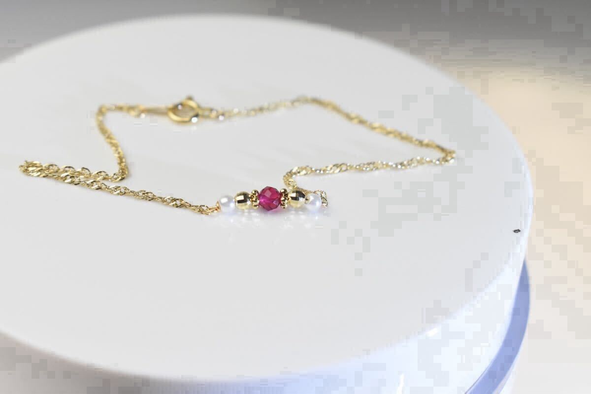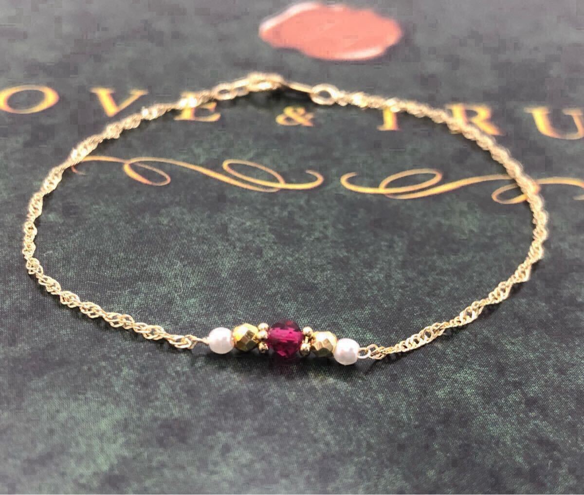 k18 18金 19cm ブレスレット ルビーブレスレット3mm アンクレット スクリューチェーン0.9mm 淡水パール2mm ミラーボール2.5mm