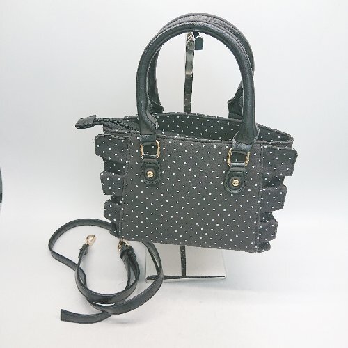 ◇ ◎ nice claup 2WAY ショルダー ハンド 水玉 ドット フリル カジュアル バッグ ブラック レディース E