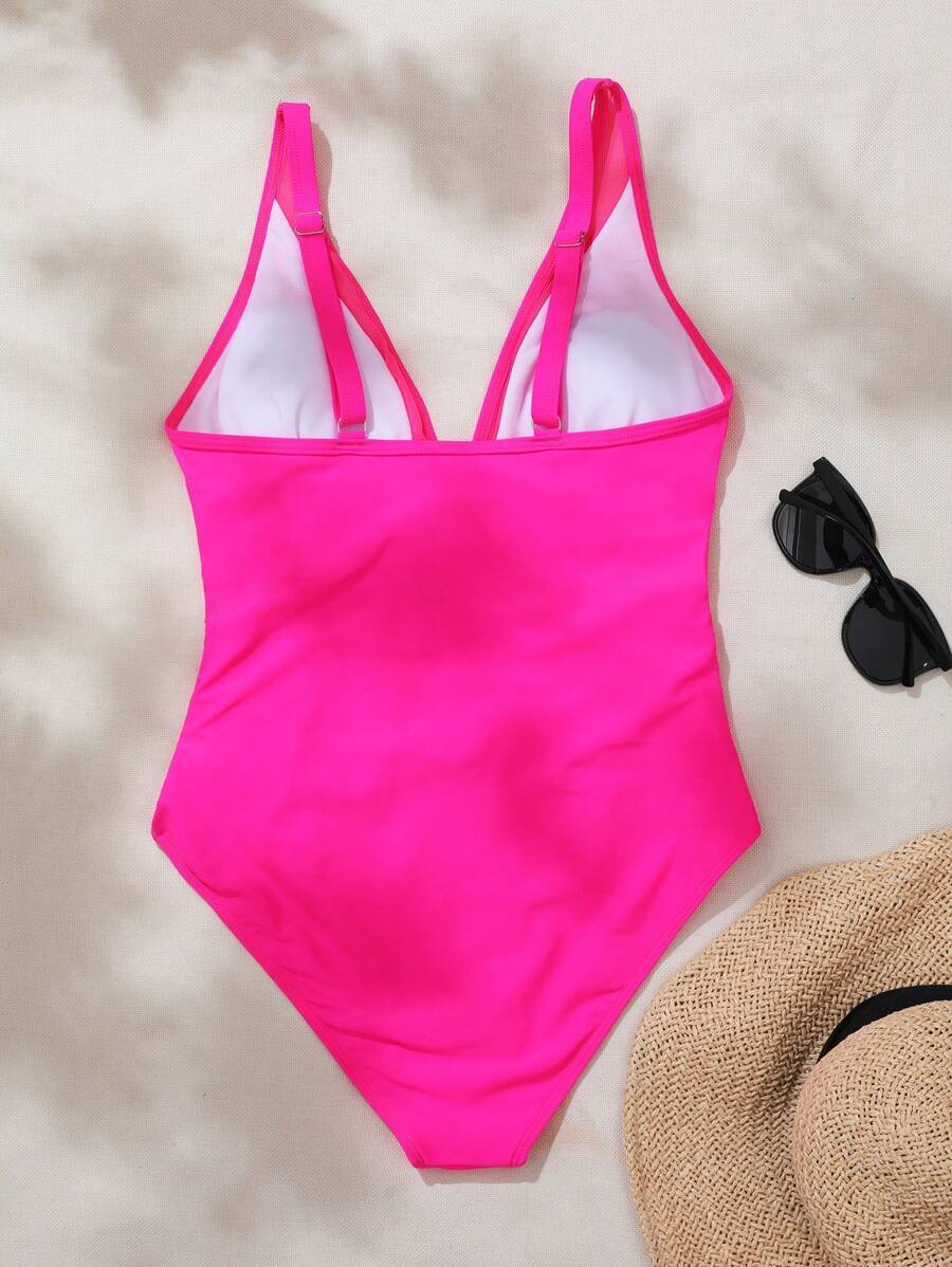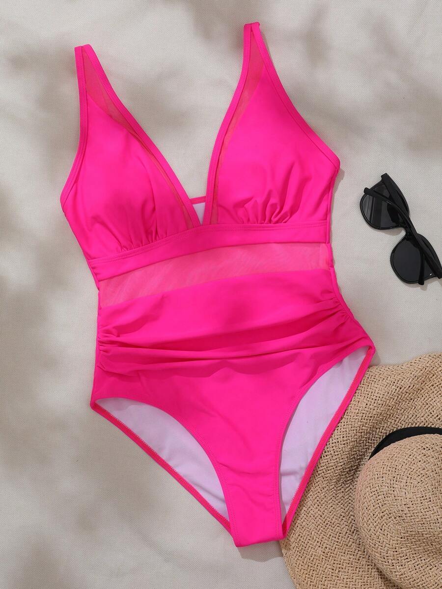 レディース 水着 ワンピース バレンタイン ビーチ用 ワイヤメッシュ コントラストワンピース水着