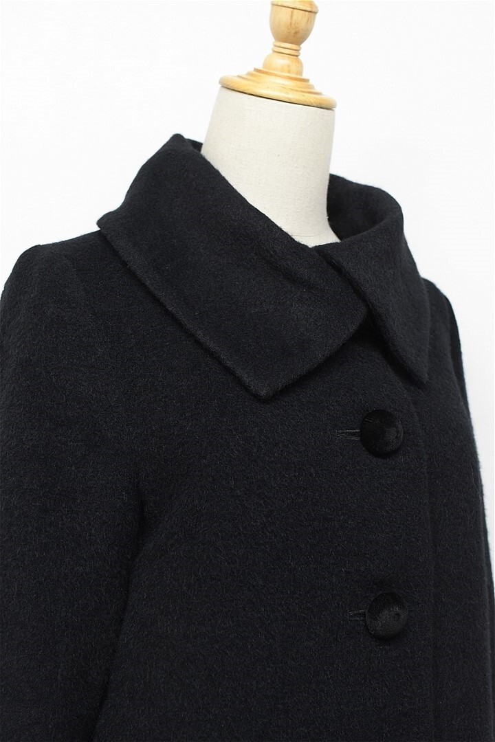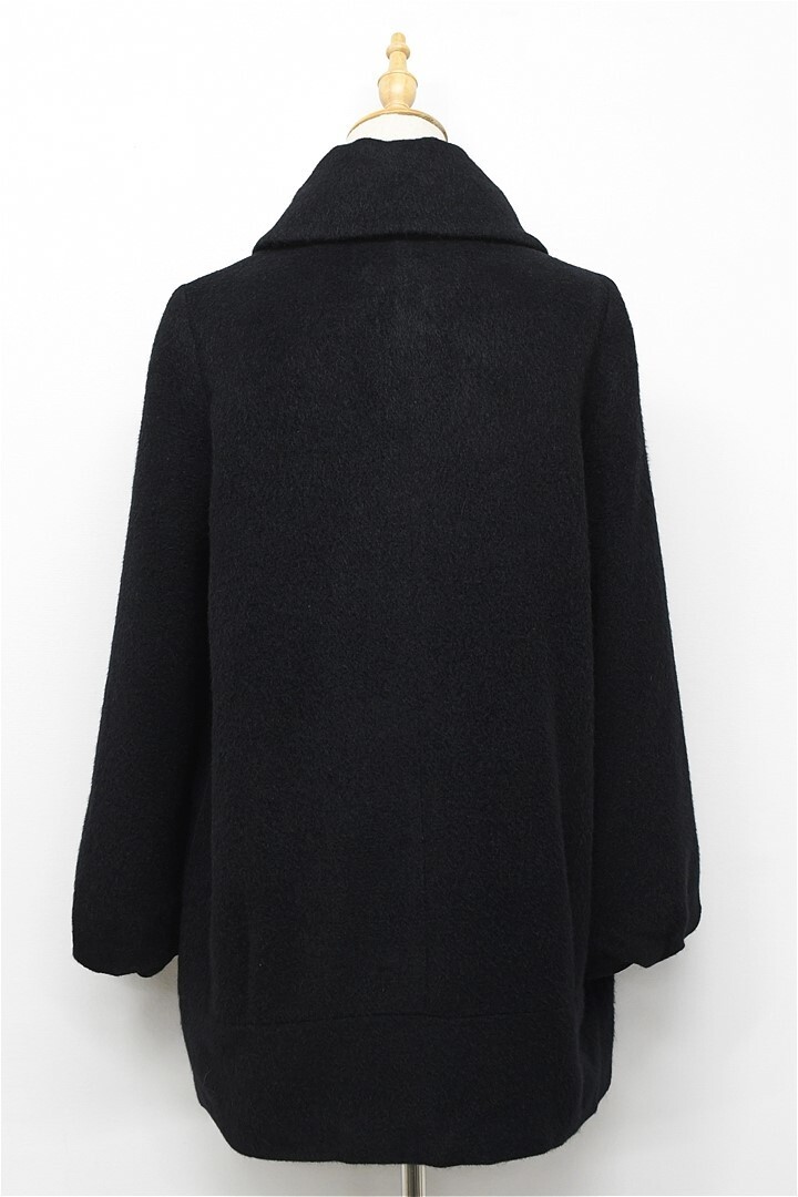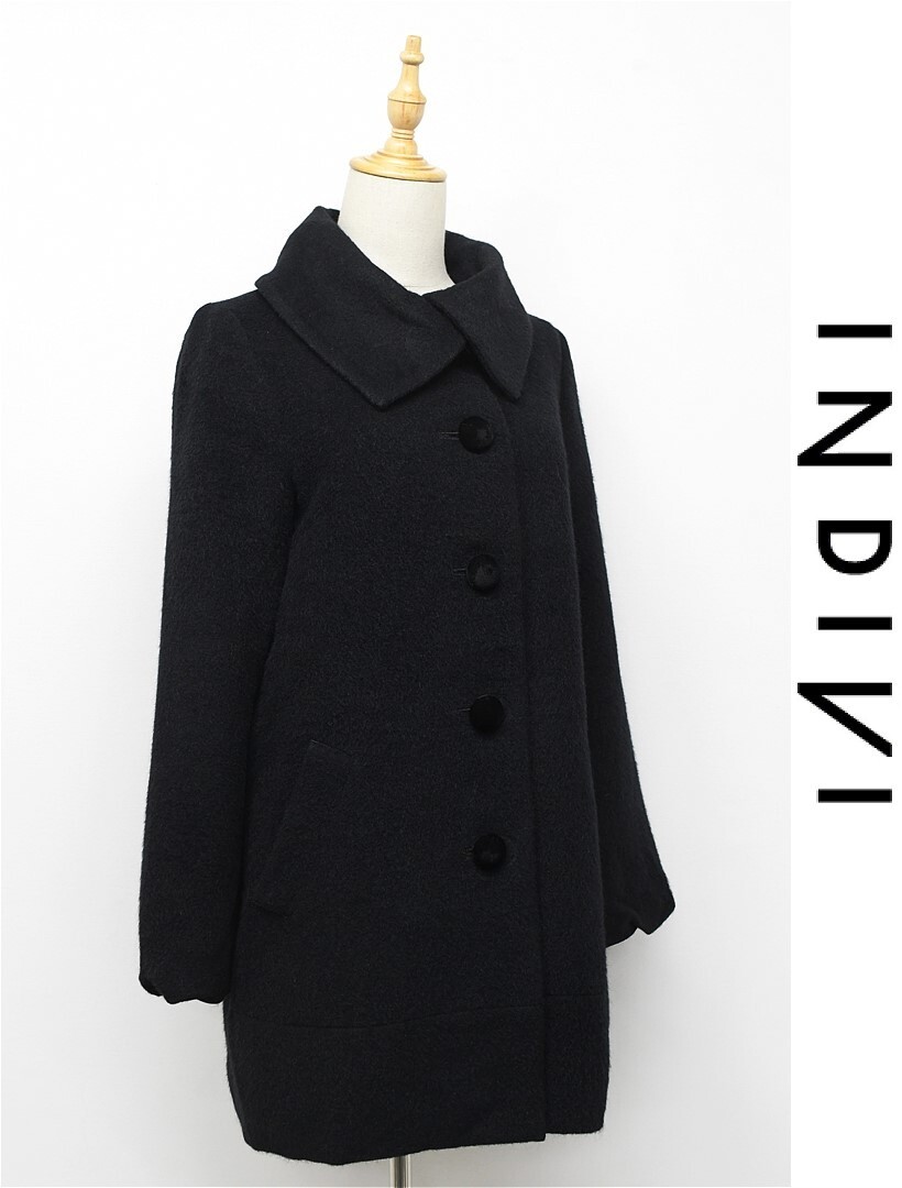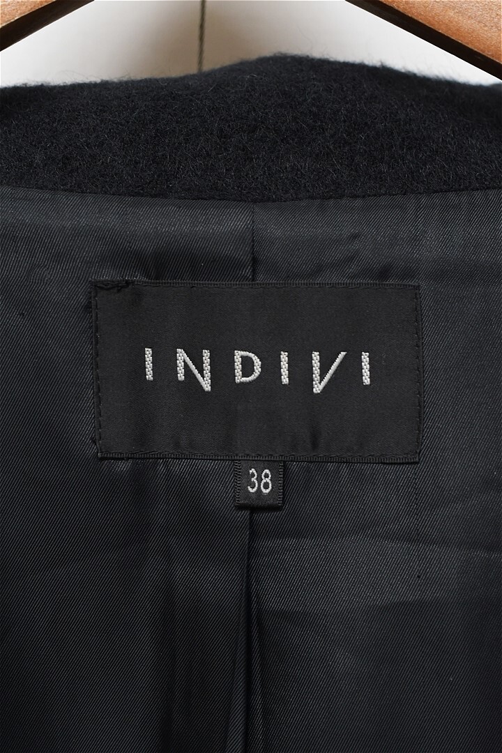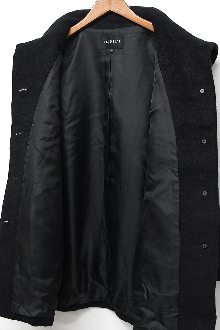 N351/INDIVI コート 表起毛 ハーフ ミドル ジャケット ウール アルパカ 38 M 黒 秋冬