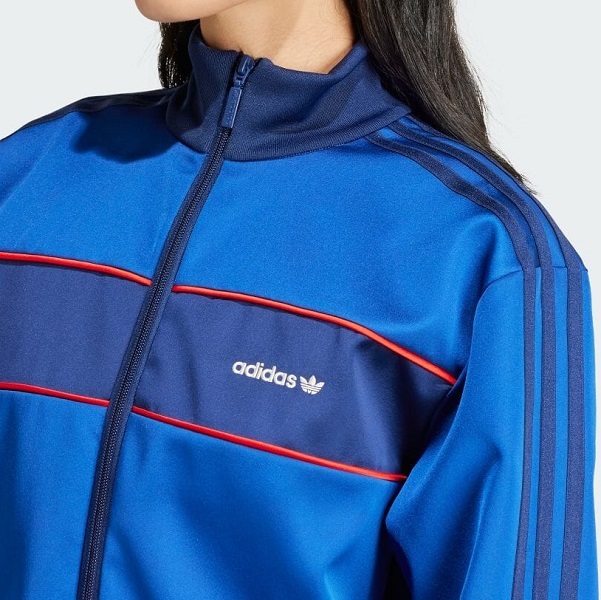 伝統とモダンラグジュアリーの融合から生まれたソフトなサテン生地のアディダスのトラックトップ。