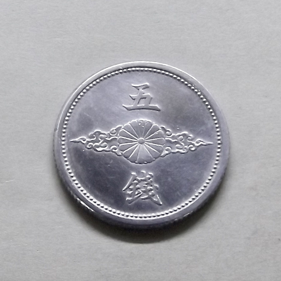1グラムの5銭アルミ貨 昭和16年 送料無料 (20331)硬貨 古銭 アンティーク 日本 貨幣 近代 コレクション コイン。
