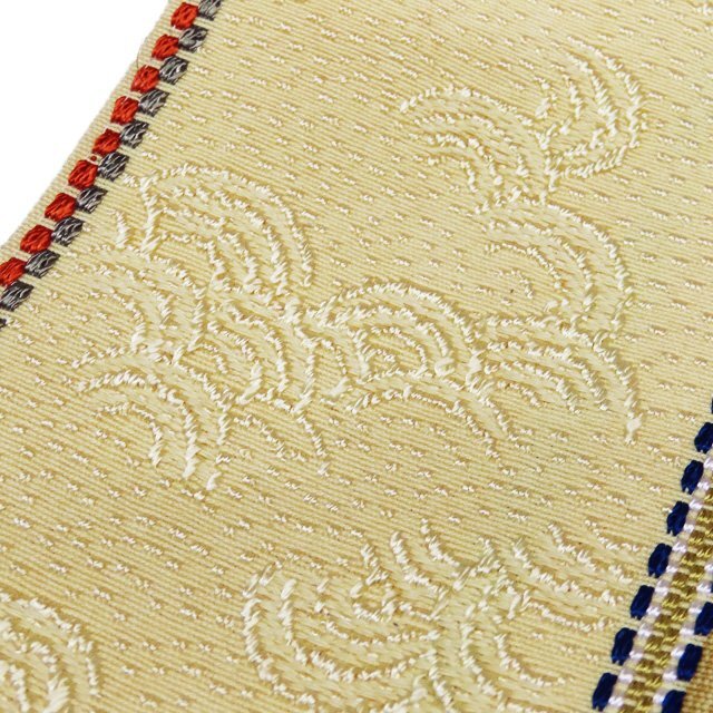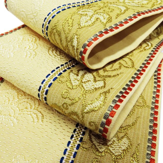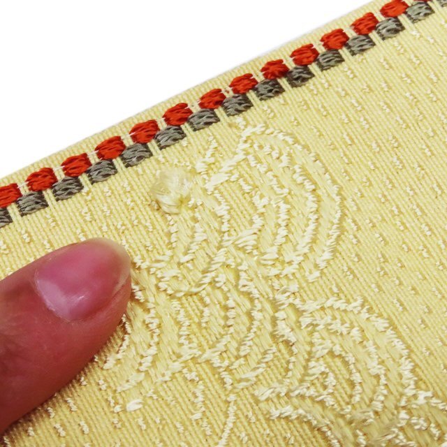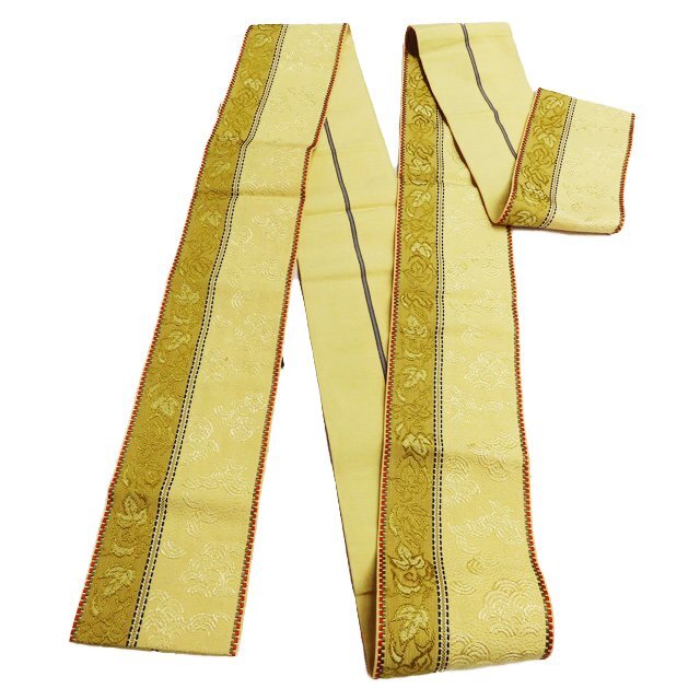 サイズ 350cm x 15cm 素材 正絹 商品ランク B ●お色 淡黄色 多色 帯芯の入っていない、未仕立てのお品物です。 裏側に少しピンク色の汚れがございますが、まだまだご着用いただけるお品物です。 少し保管臭が残っています。匂いに敏感な方はご購入をお控えください。 一部商品は実店舗・他サイトでも並行して販売しておりますので売り切れの際はご了承ください。 その他多数販売中 ki- | ||||||