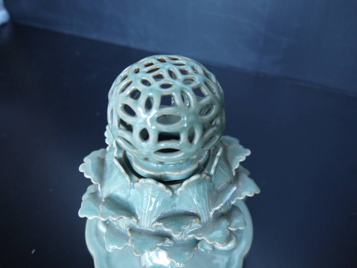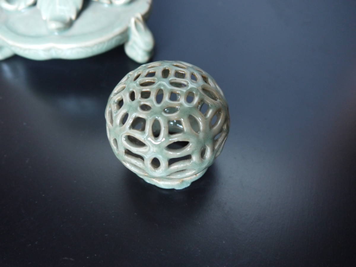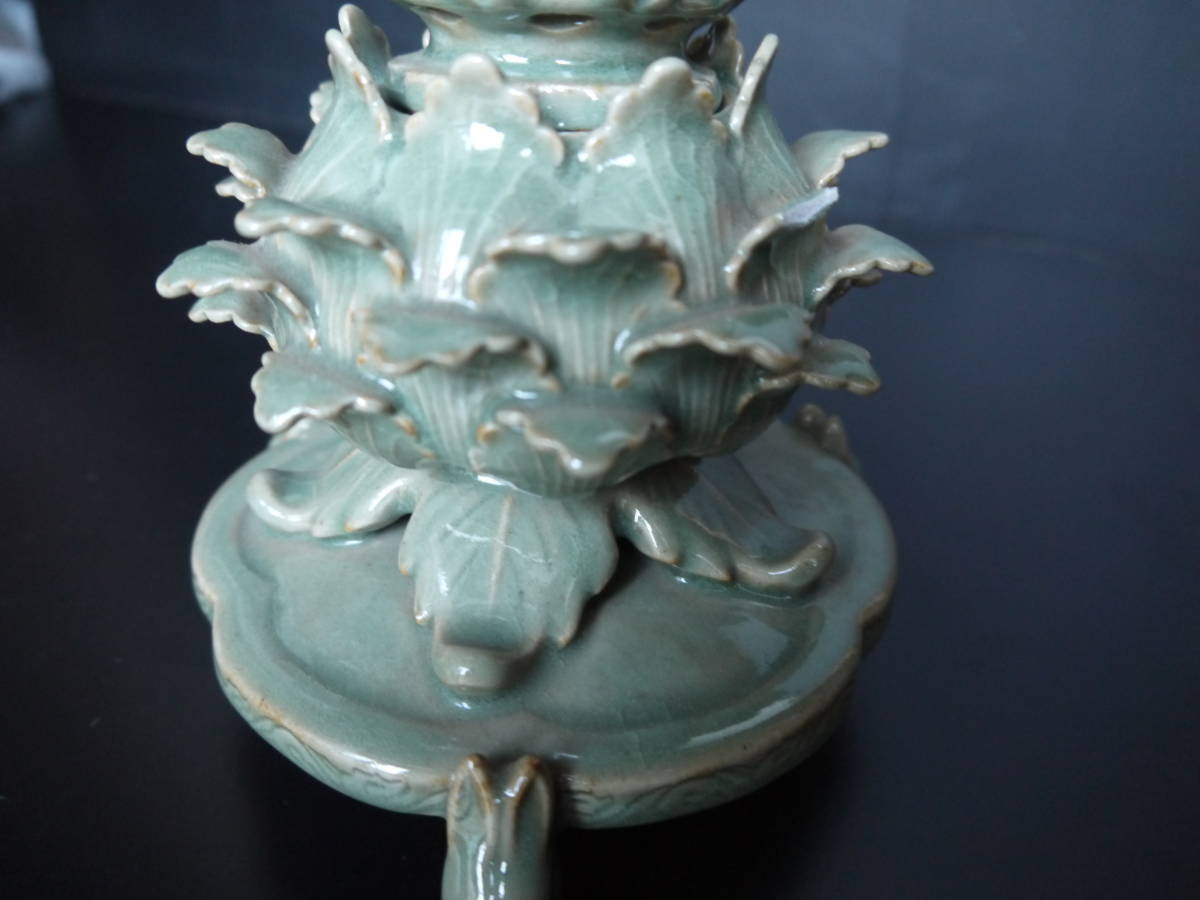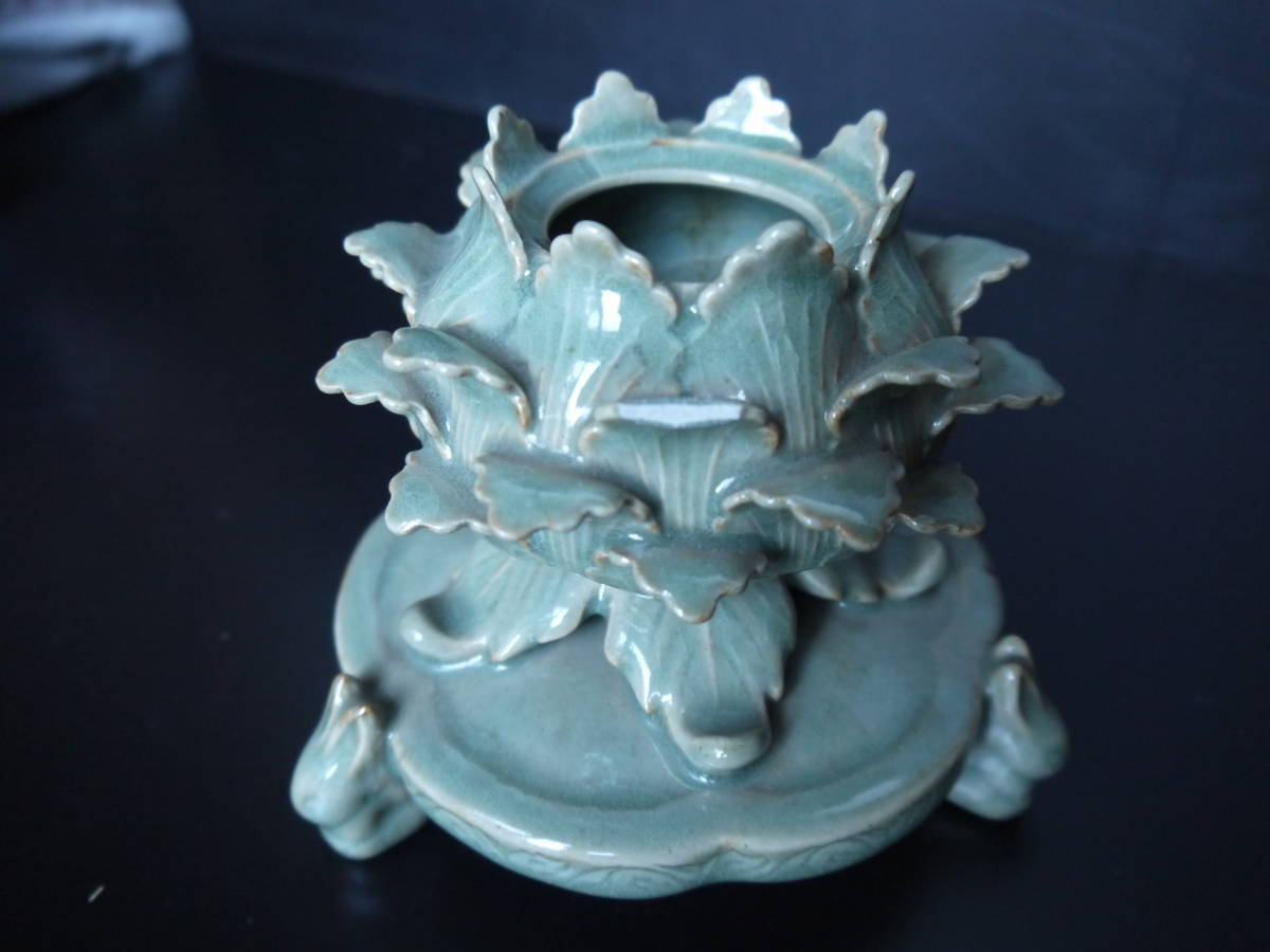☆【A10714】中国古美術 貫入 青釉 三足香炉 青磁香炉 パイナップル?青磁器 時代古物 茶道具 珍品