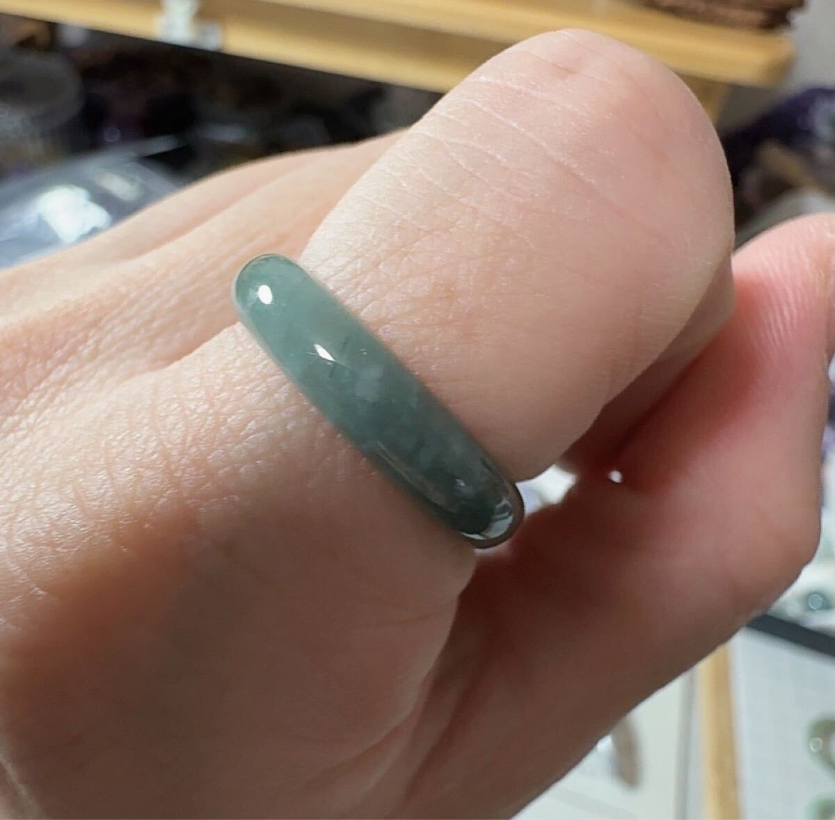 R2-0436天然本翡翠《本物保証》 翡翠リング約17.5号 一点物 希少 縁起物 お守り パワーストーン