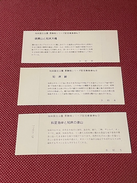 知床国立公園 景勝地シリーズ記念乗車券No.7 No.8 No.9 (管理番号92-3)