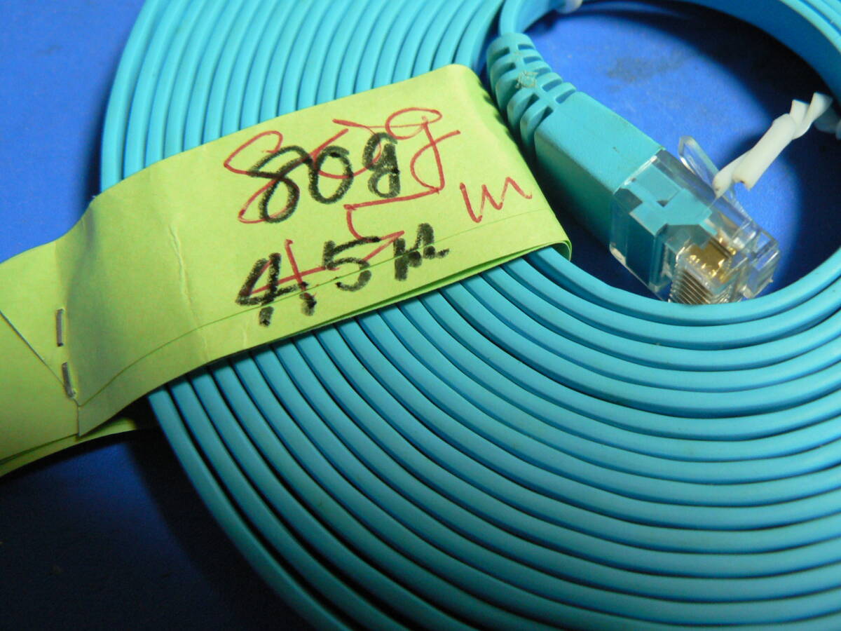 ・LAN05-11:ストレート LANケーブル CAT.5  4.5m  80g フラット4芯 爪あり 水色