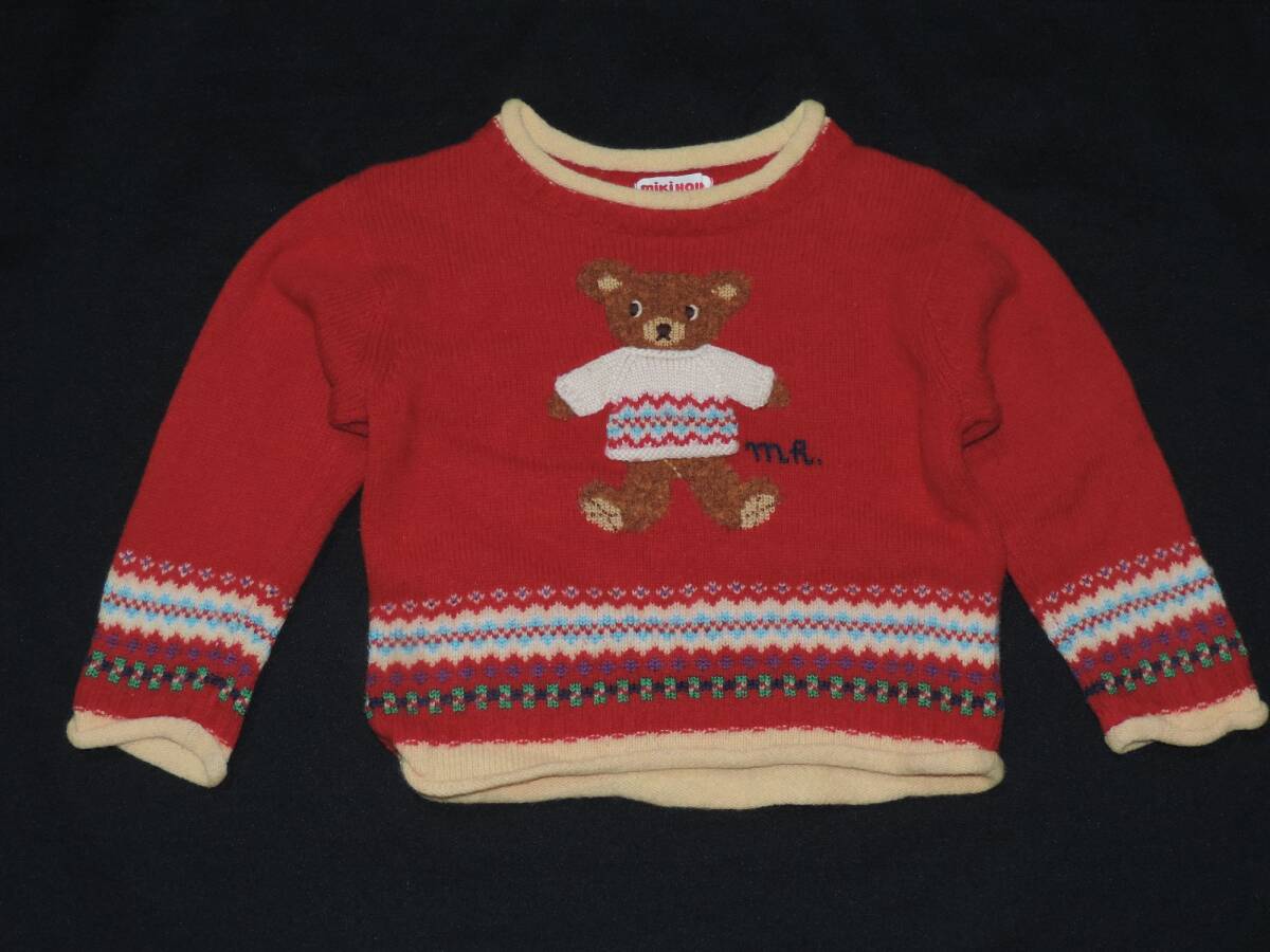 ☆ミキハウス☆くまデザイン赤の長袖ニット☆セーター☆90センチ☆