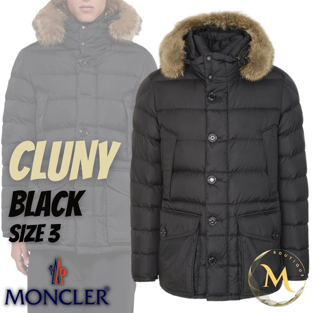 Lサイズ【新品未使用タグ付き】MONCLER CLUNY クルーニー Coyote fur ダウンジャケット TG3 ブラック色 黒色 本物認証 ◆定価40万円◆