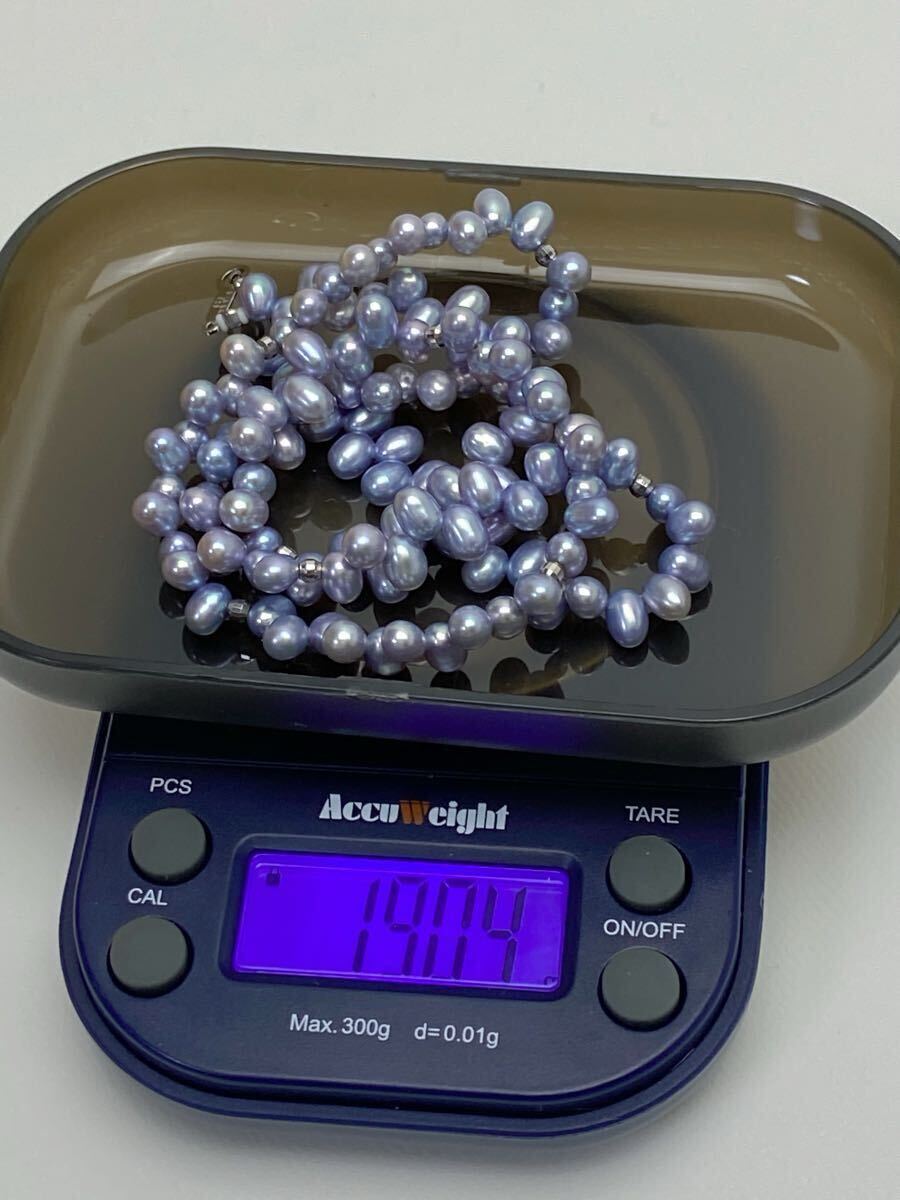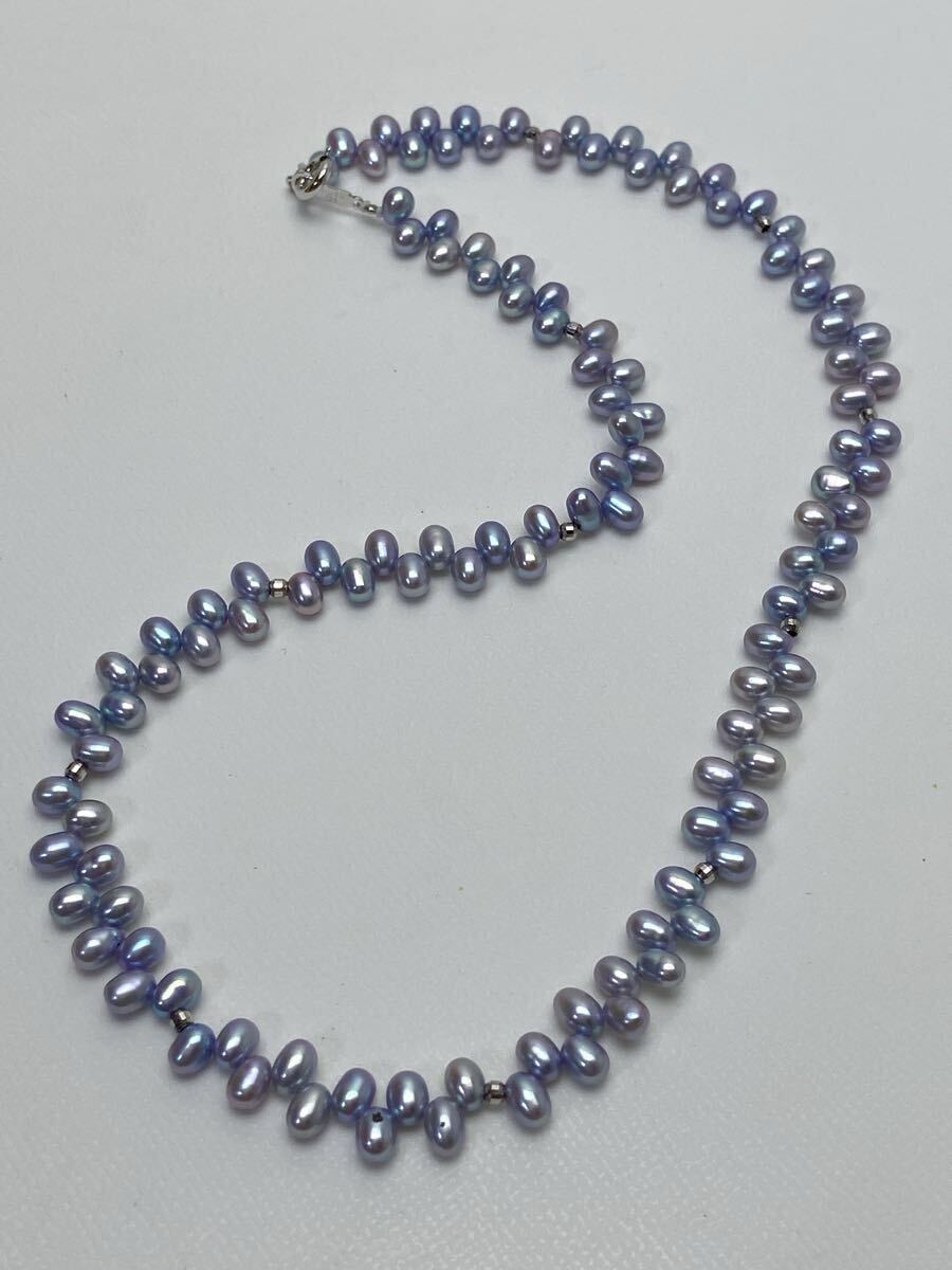 G013 未使用 淡水パール ベビーパール ネックレス 45cm ブルー系