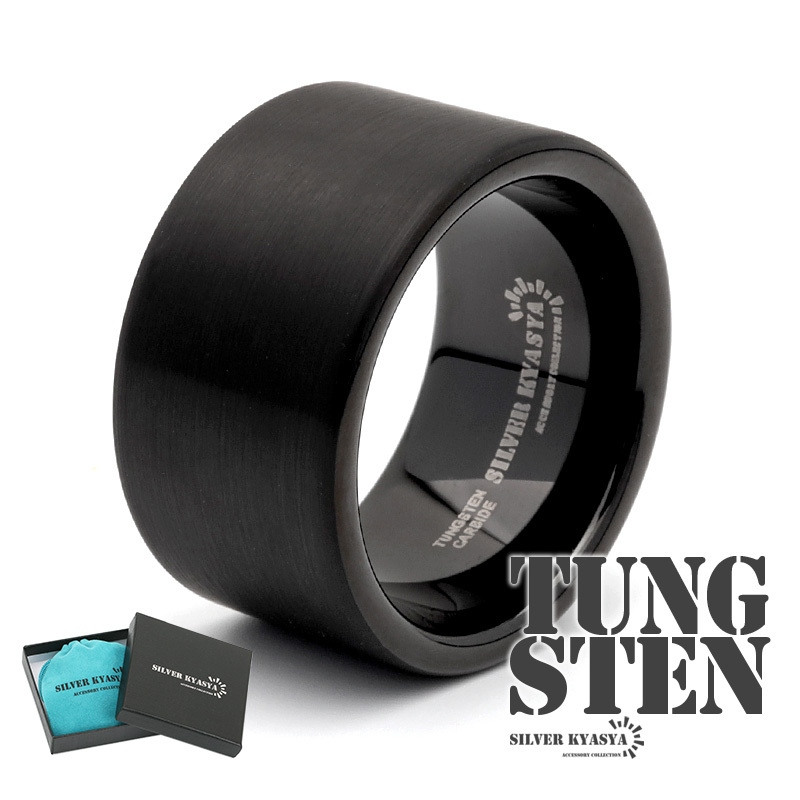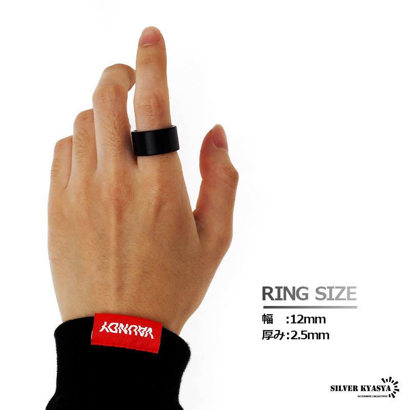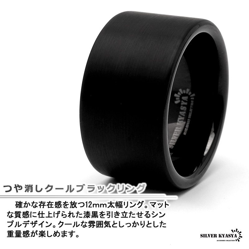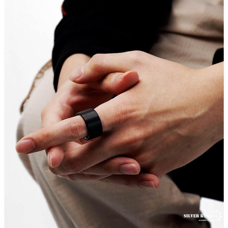 確かな存在感を放つ12mm太幅リング。マットな質感に仕上げられた漆黒を引き立たせるシンプルデザイン。クールな雰囲気としっかりとした重量感が楽しめます。