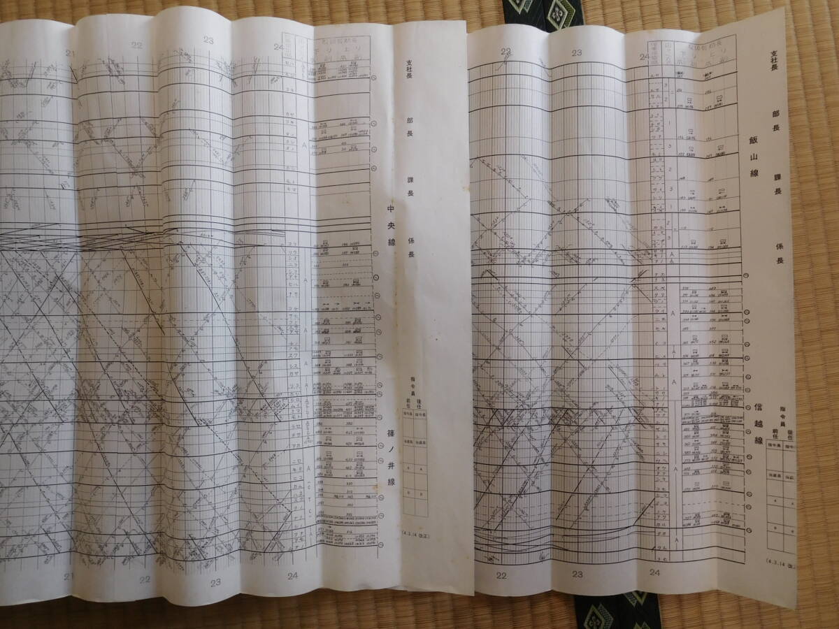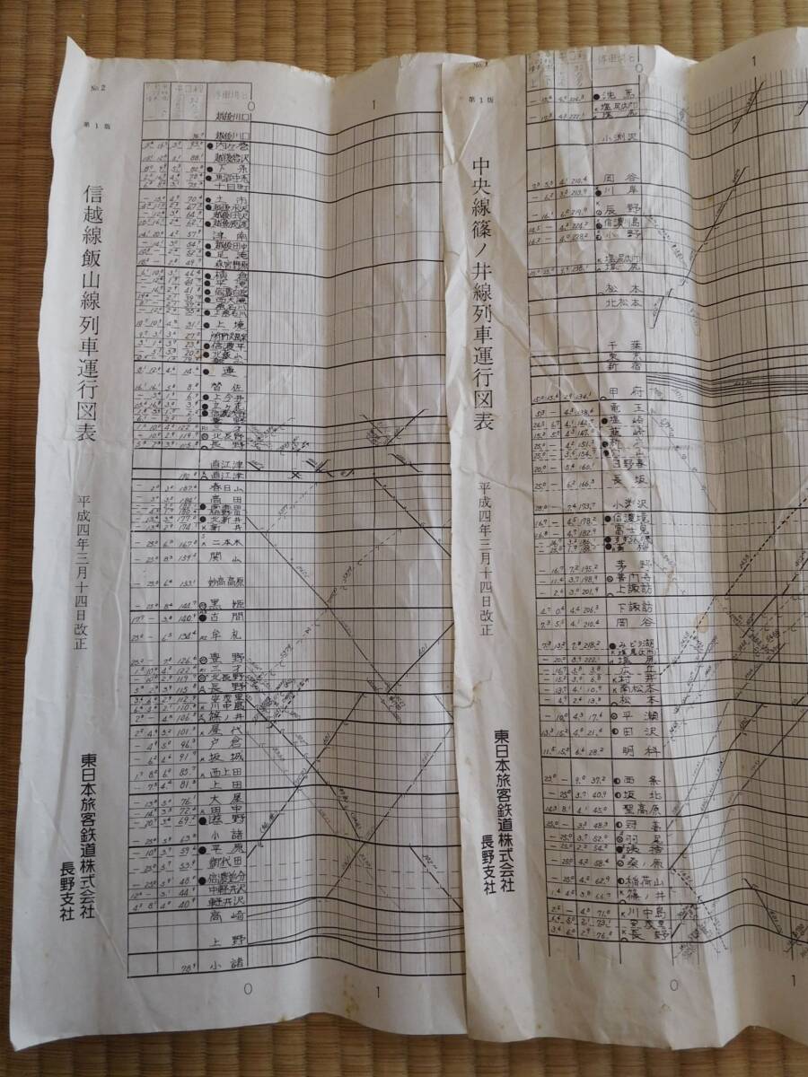 中央線篠ノ井線/信越線飯山線列車運行図表(コピー品)2枚まとめて 平成4年3月14日改正 JR東日本長野支社 1992年 列車ダイヤ