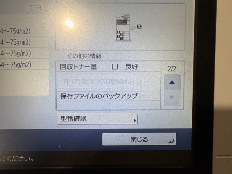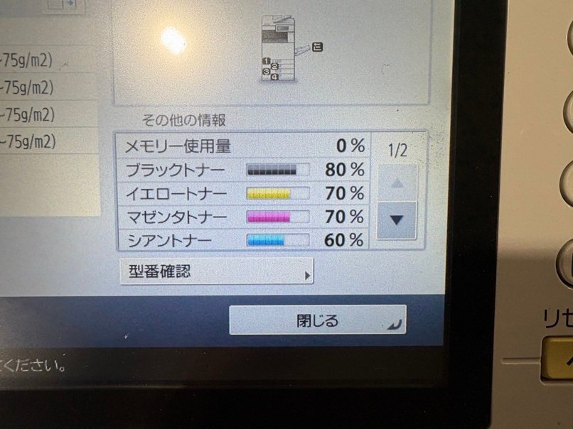 | 商品説明 | <<中古品・現状渡し>> ※8月9日の土曜日から8月17日の日曜日まで 夏季休暇の為、 ご質問への返信や、出荷の対応、お取引などについては対応出来ません。 休み前の出荷最終日は、8月6日の水曜日、 休み明けの出荷は、8月19日の火曜日から順次発送となります。 予め、ご了承下さい。 !!ご注意下さい!! (ヤマトボックスチャーターさんでの発送をご検討の方) ヤマトボックスチャーターさんにて、1人態勢での配送が出来なくなり、 送料がホームページで表示されるより高くなる可能性がある地域があるとの事です。 <対象地域> 北海道・青森・秋田・山形・福島・茨城 山梨・岐阜・和歌山・福井・鳥取・島根 愛媛・高知・徳島・香川・大分・宮崎・長崎 兵庫・奈良・京都・沖縄 以上の地域については、ホームページの料金検索の送料の金額に追加の金額がかかる可能性があります。 ご質問いただければ、当方にてヤマトさんに確認して、ご返信させていただきますのでよろしくお願い致します。 4段・コピー・ファクス プリンター・スキャナー機能付き 簡単にですが、外装、清掃済み!! ※写真ではわかりにくいに細かい擦り傷や黄ばみなどがある場合があります。 ※現状渡しとなります。 カウンター トータル1 21,996枚 トータル白黒 18,011枚 コピー 15枚 トータルA 3,970枚 トナー残量 BK:80% C:60% M:70% Y:70% ※詳細は写真をご確認ください。 ※出荷前のチェックで枚数が少し増えます。 ※出荷前のチェックでトナー残量が、 多少、減る場合もございます。 ≪コピーテスト≫正常に出力OKです。 ≪FAXテスト≫正常に送受信OKです。 ≪プリンターテスト≫正常に出力OKです。 ≪スキャナテスト≫正常に読込OKです。 ≪メーカーHP≫メーカーホームページ ≪設置・保守≫地域によっては対応可能です。ご相談下さい。 全ての機能をチェックすることは出来ませんので、 商品知識が有り自分で対応出来る方、 メーカー又は販売店と相談出来る方のみ ご検討・ご入札の程お願い致します。 実物を確認したい方は、ご足労をおかけいたしますが、 弊社まで来訪願います。 ※倉庫の為、機械の準備がありますので、 予め、ご連絡をいただき日程の調整をお願い致します。 連絡などなしに来ていただいてもお見せ出来ません。 又、来ていただいてもその場での販売や値引き交渉などについても受け付けておりません。 創業20年の中古コピー機専門の販売会社です。 コピー機の販売や修理を行っております。 下記アドレスにて、お待ちしております。 東京コピー販売株式会社 〒350-2213 埼玉県鶴ヶ島市脚折1429-82 TEL:049-271-0200 登録番号:T5030001069151 メール:お問い合わせ URL:弊社ホームページ ●ノークレーム・ノーリターンでお願い致します。 |